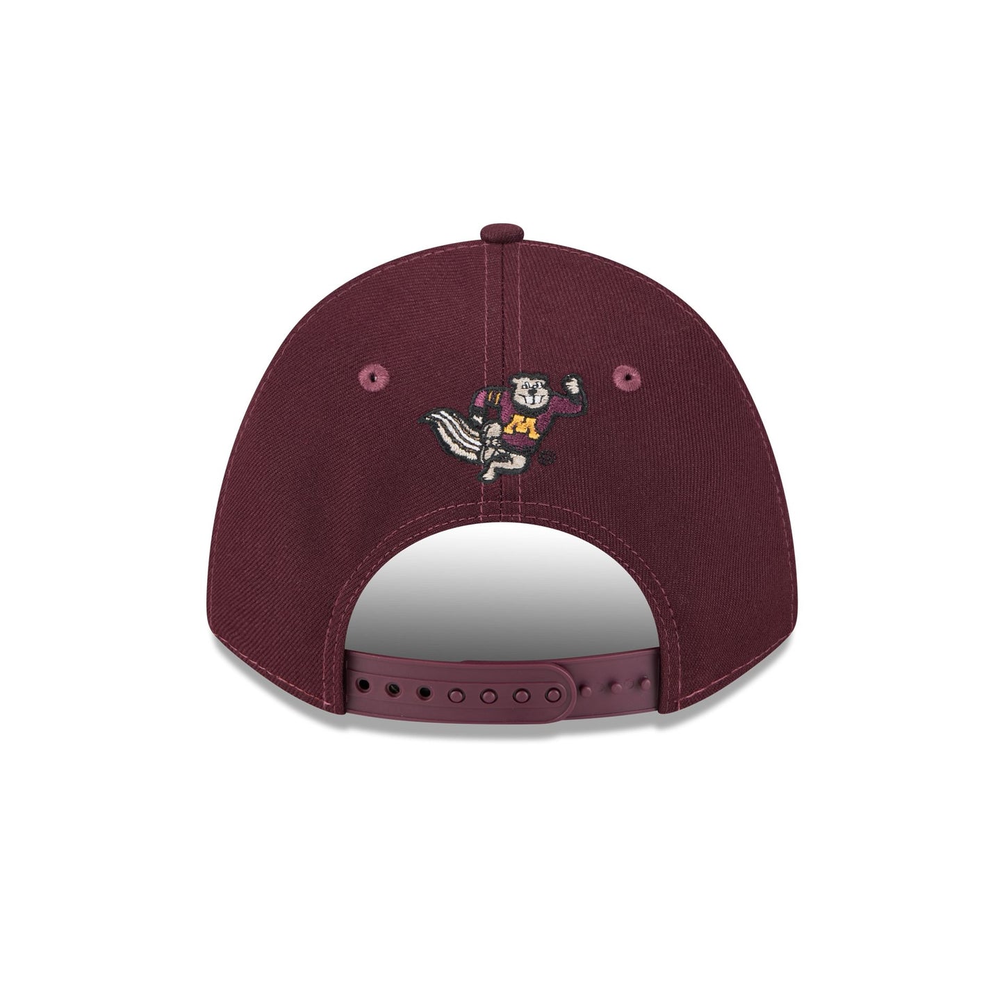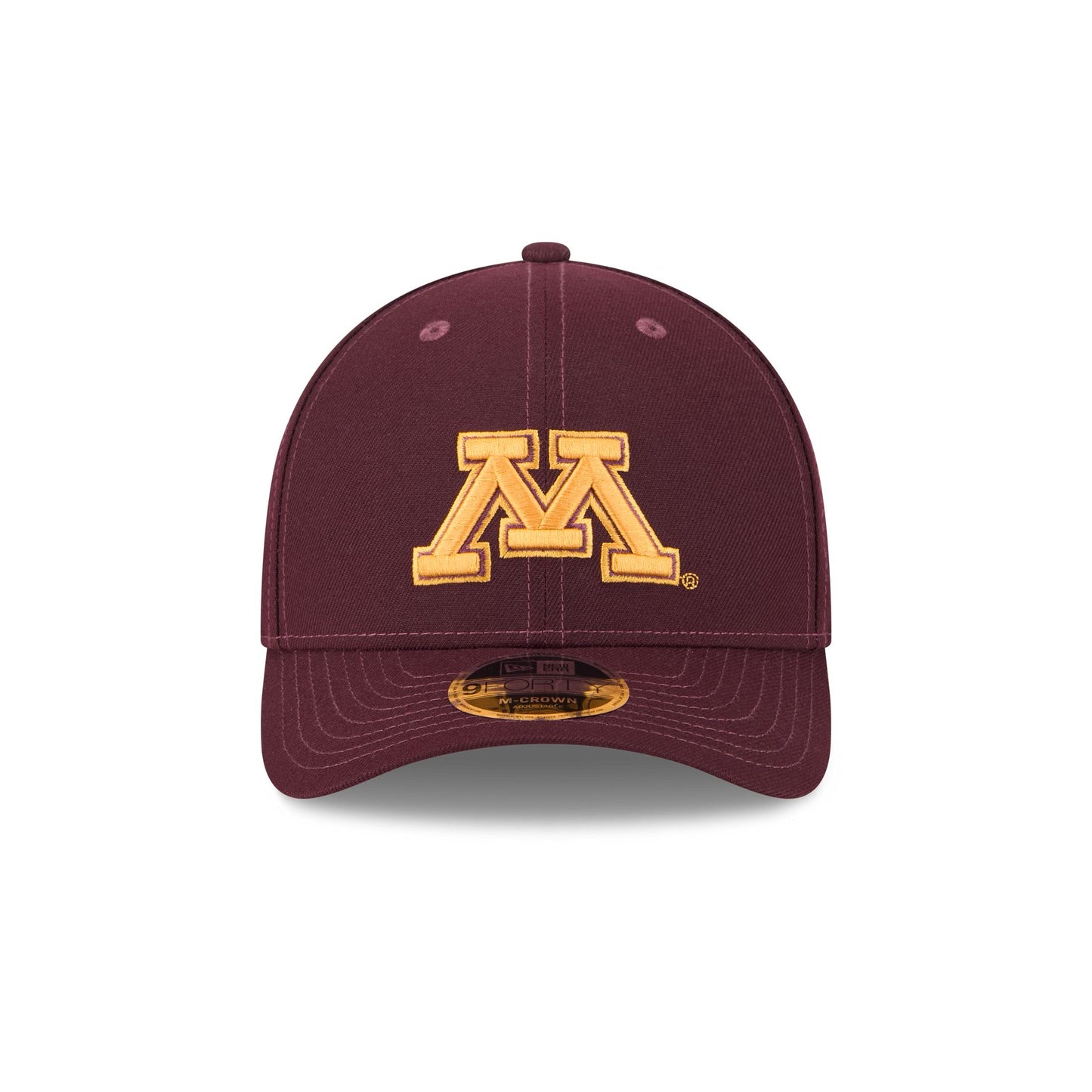 The Minnesota Golden Gophers Team 9FORTY M-Crown Snapback features an embroidered Golden Gophers logo at the front panels with an alternate team logo above a snapback closure at the rear and a gray undervisor.