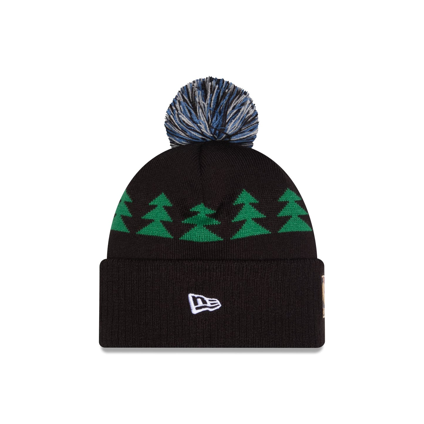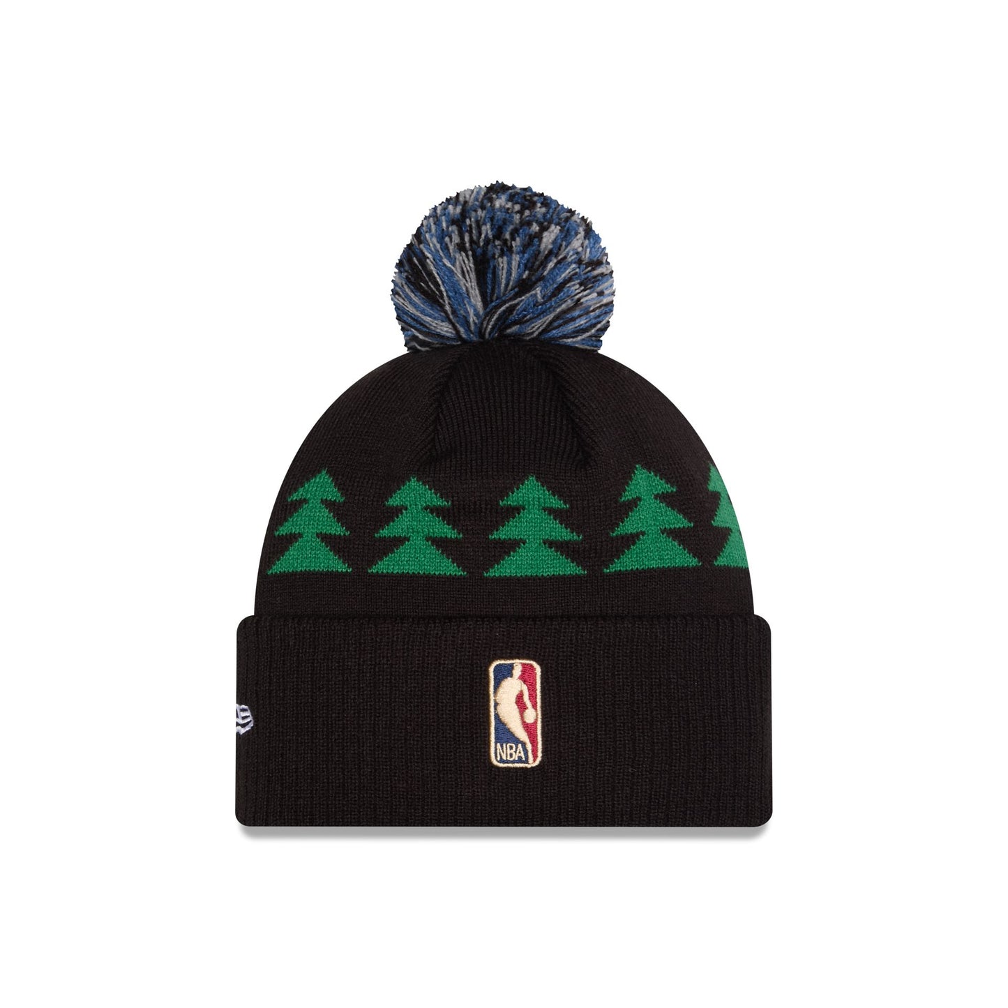 The Minnesota Timberwolves 2025 Classic Edition Pom Knit features an embroidered Timberwolves logo at the front cuff with an NBA Logoman at the rear and a one-time removable pom.