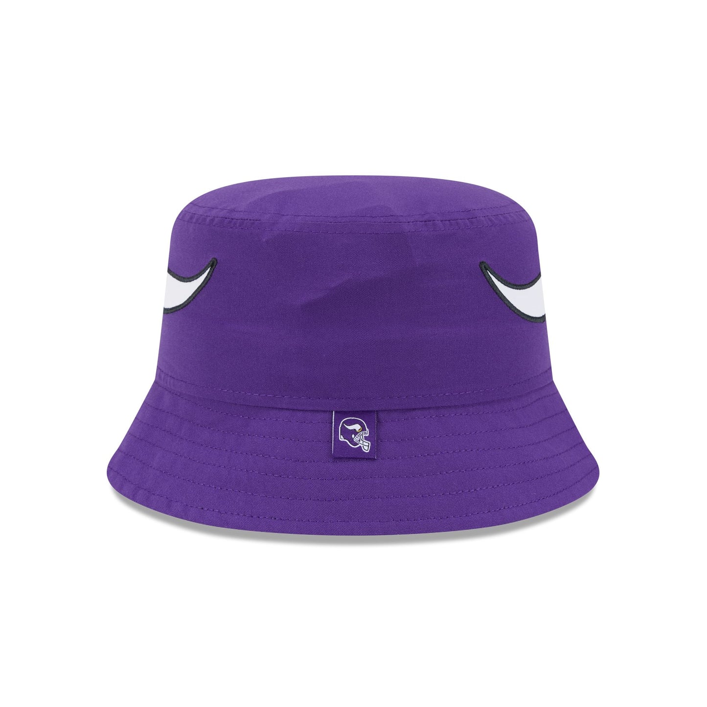 The Minnesota Vikings Helmet Bucket Hat features an embroidered Vikings helmet design throughout.