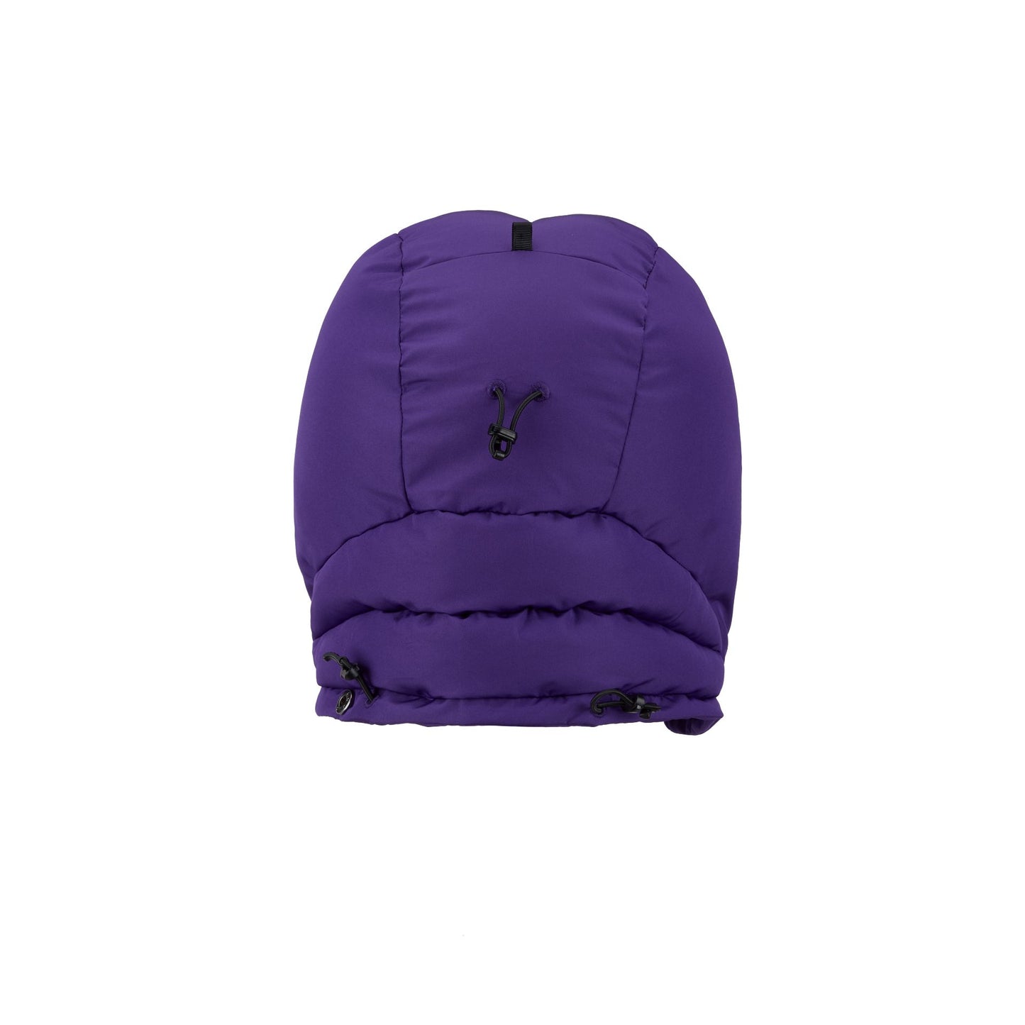The Minnesota Vikings Helmet Puffer Hood features an embroidered Vikings wordmark at the front with a helmet design at each side. Additional details include an insulated filling with adjustable drawstrings at the back of the head and neck. The puffer helmet has a 4 snap-button closure at the right.