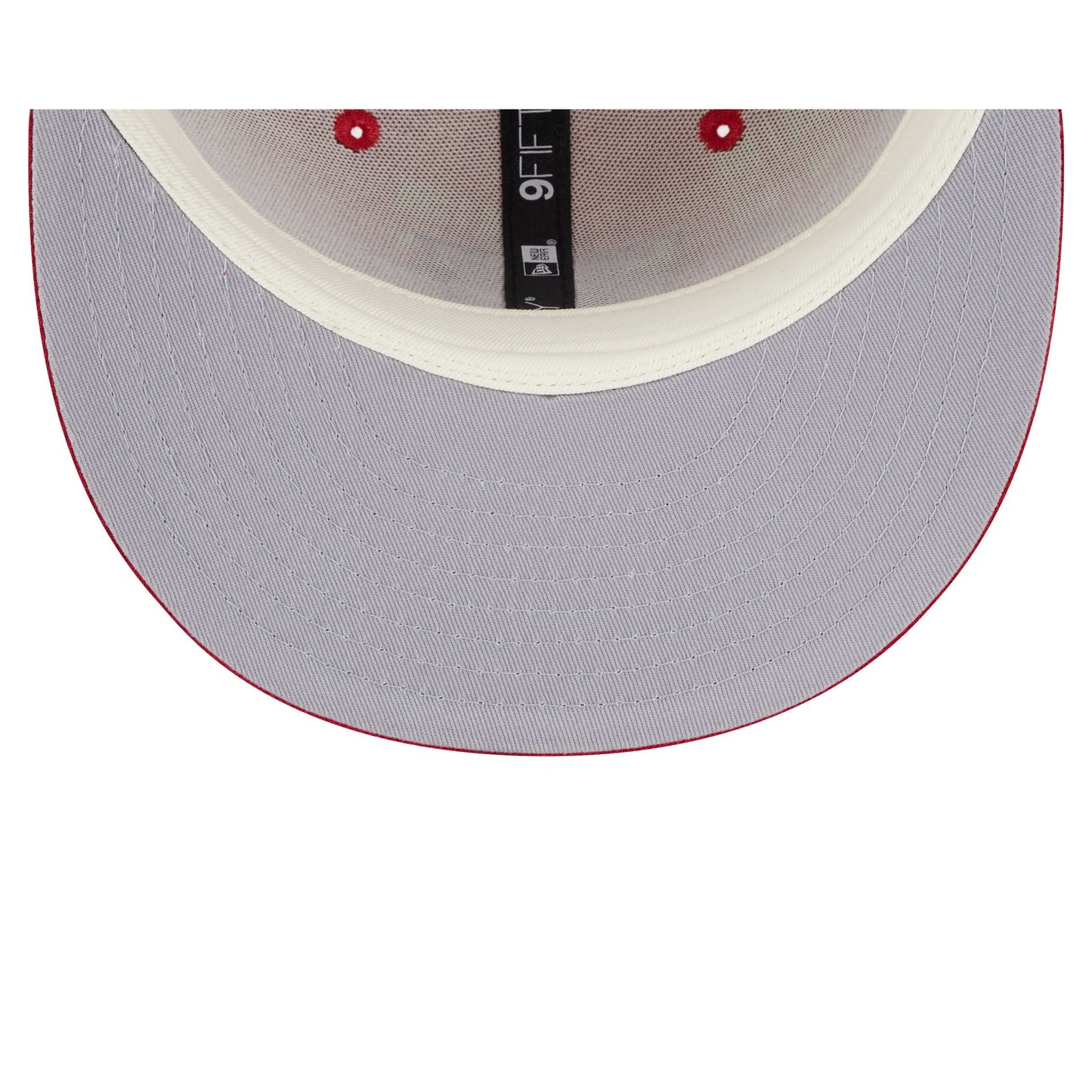 The Nebraska Cornhuskers Plaid 9FIFTY Snapback features an embroidered Cornhuskers logo at the front panels against a matching plaid pattern. Additional details include a team logo above a snapback closure at the rear and a gray undervisor.