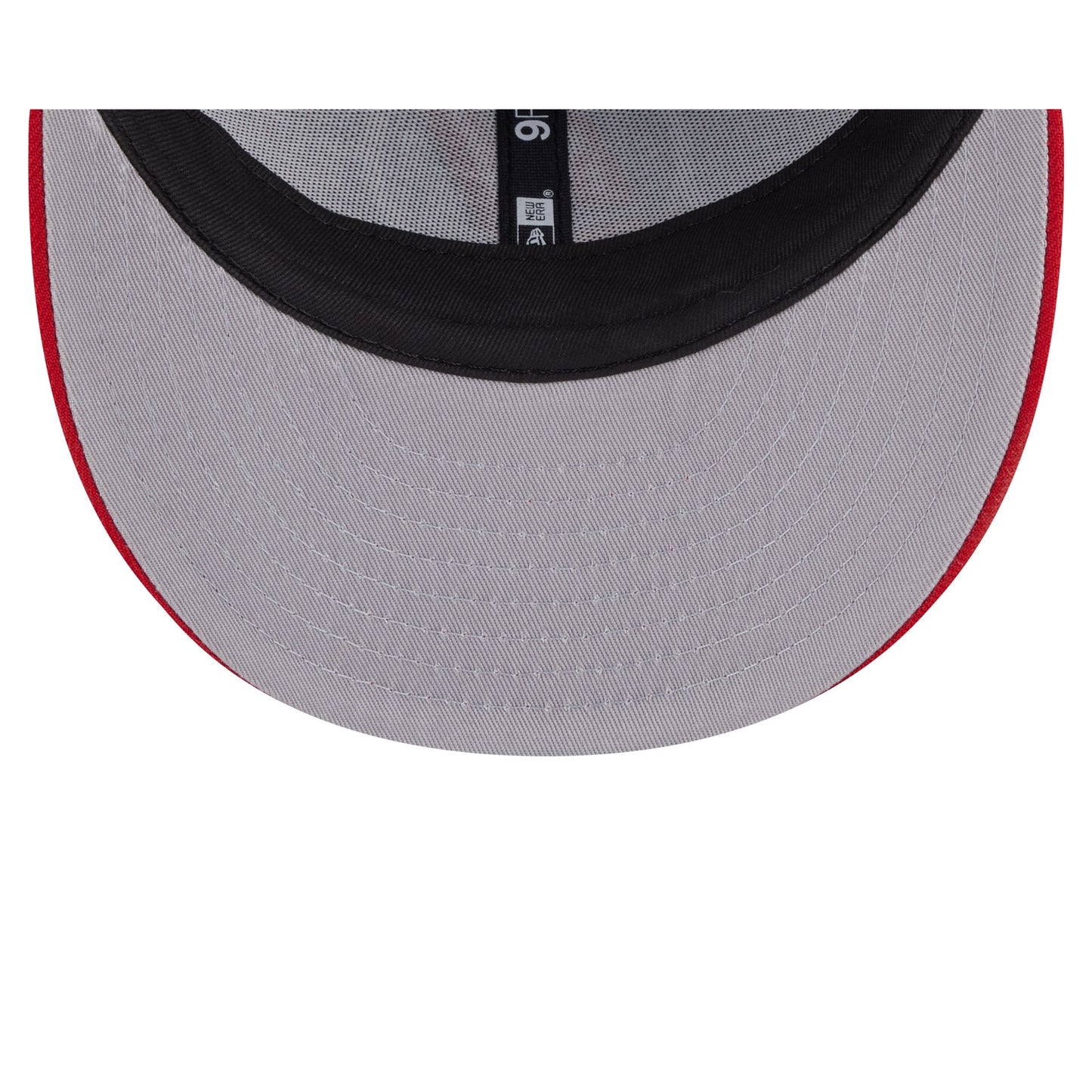 The New Jersey Devils Heather Gray Wool Low Profile 9FIFTY snapback features a faux leather applique Devils logo at the front panels against a wool fabrication throughout the cap. Additional details include a conference patch at the right-wear side, an NHL pin at the front, and a script wordmark above an adjustable snapback closure at the rear.