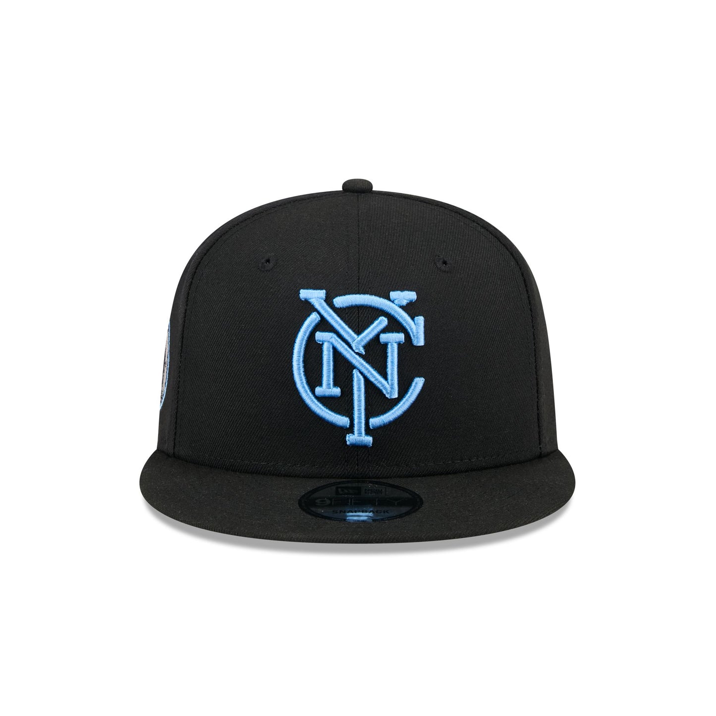 The New York City FC 2024 Jersey Hook 9FIFTY Snapback features an embroidered New York City FC logo at the front panels with an alternate logo at the right-wear side. Additional details include a snapback closure at the rear and a gray undervisor.