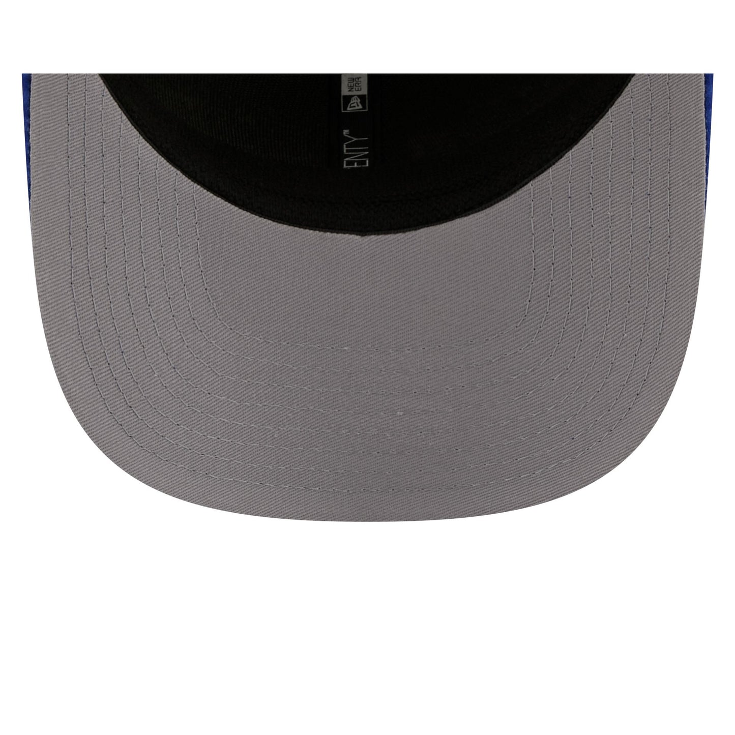 The New York Knicks 2025 City Edition 9SEVENTY Stretch-Snap features an embroidered Knicks City Edition logo at the front panels with a logo at the right-wear side and a rope at the visor. Additional details include the NBA Logoman above an adjustable stretch-snap closure at the rear and a gray undervisor.
