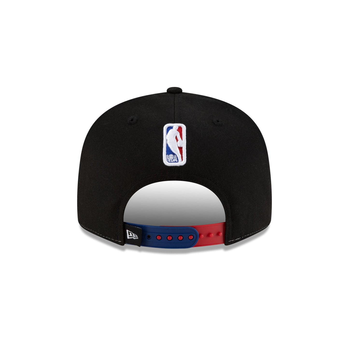 The New York Knicks 2025 Emirates Cup Champions 9FIFTY Snapback features an embroidered 2025 Emirates NBA Cup Champions graphic at the front panels with a Knicks logo at the right-wear side. Additional details include the NBA Logoman above an adjustable snapback closure at the rear and a gray undervisor.