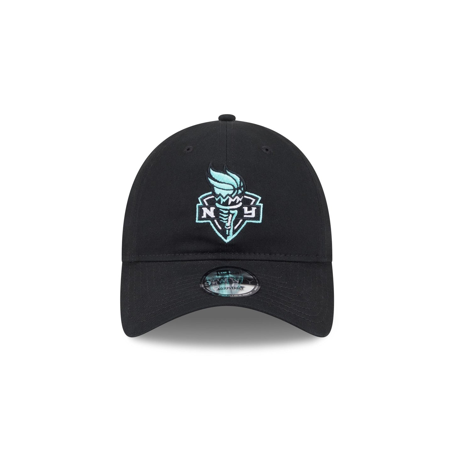 The New York Liberty 2025 All-Star Game 9TWENTY Adjustable Cap features an embroidered Liberty logo at the front panels with a matching WNBA Logowoman above an adjustable D-Ring closure at the rear. Additional details include an establishment date at the right-wear side and a gray undervisor.