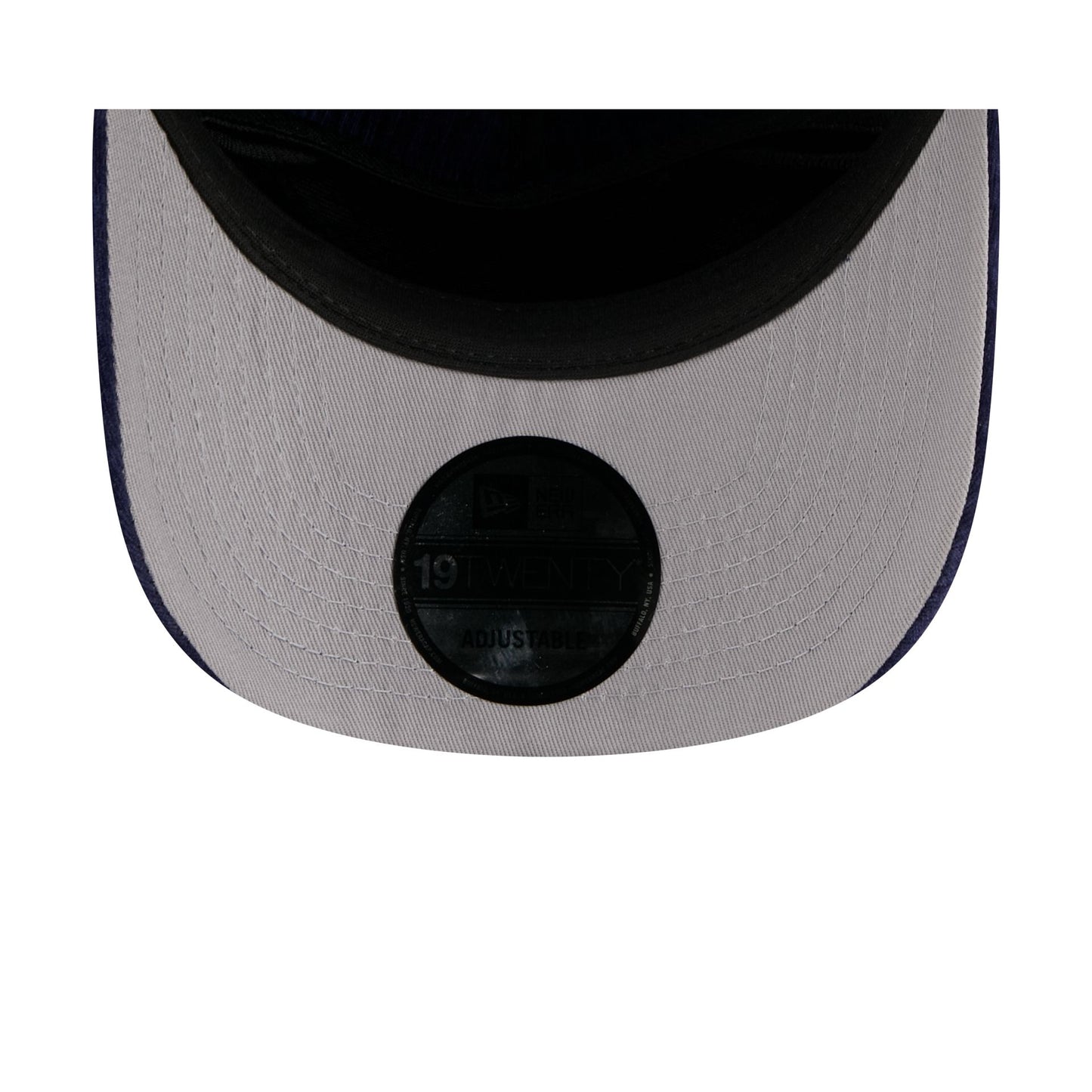 The New York Rangers Velvet Team Script 19TWENTY Adjustable Cap features an embroidered Rangers wordmark script at the front panels with a team logo at the right-wear side. Additional details include an adjustable snapback closure at the rear and a gray undervisor.
