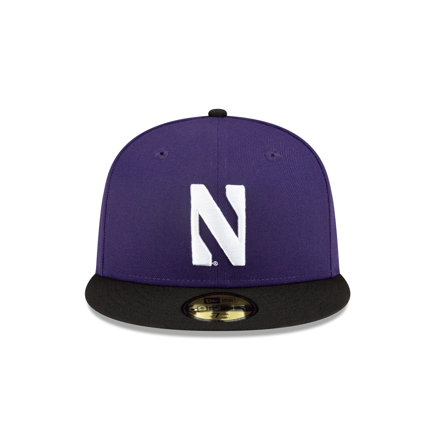 The Northwestern Wildcats 59FIFTY Fitted Cap features an embroidered Wildcats logo at the front panels with a team wordmark at the rear, a black visor, and a gray undervisor.