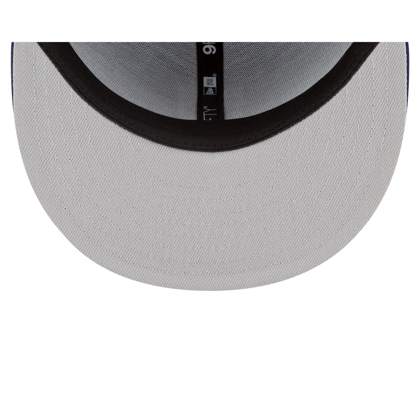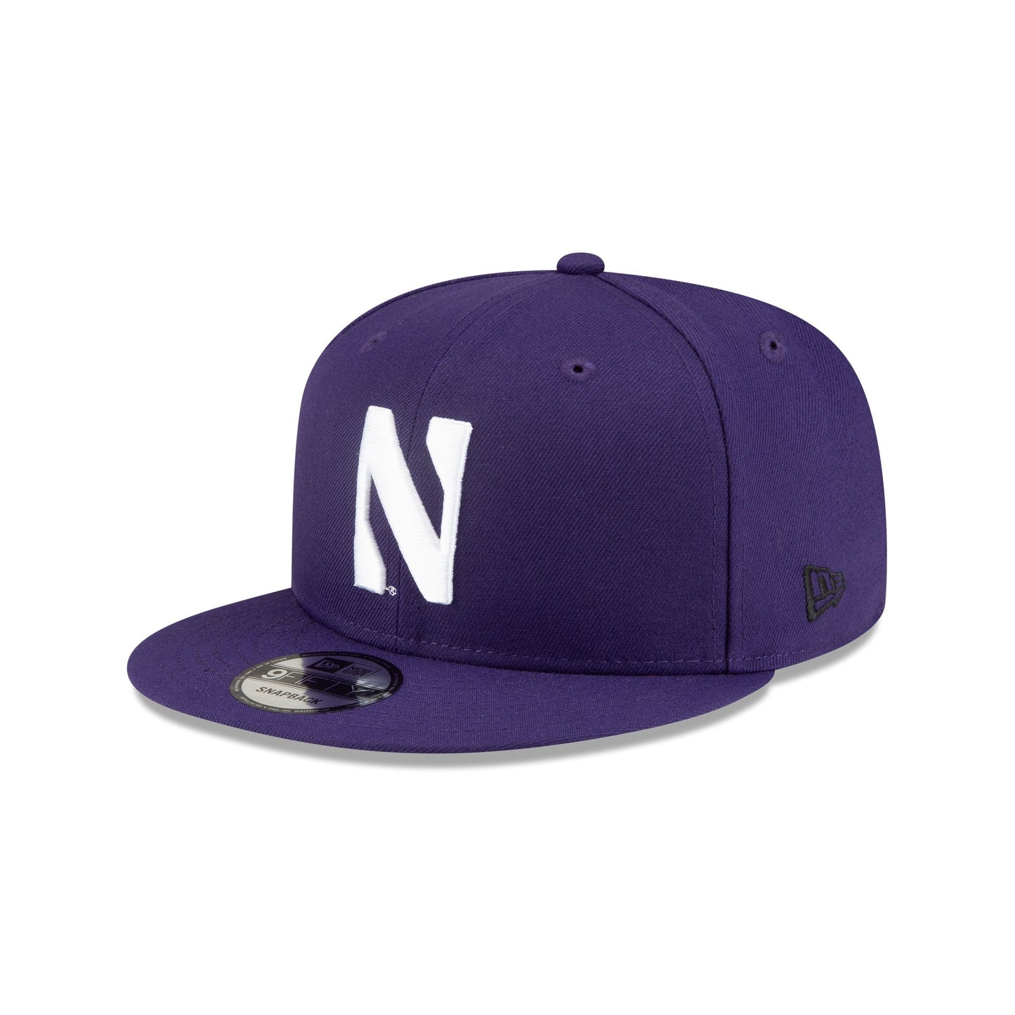 The Northwestern Wildcats 9FIFTY Snapback features an embroidered Wildcats logo at the front panels with a team wordmark at the right-wear side, a gray undervisor, and a snapback closure at the rear.