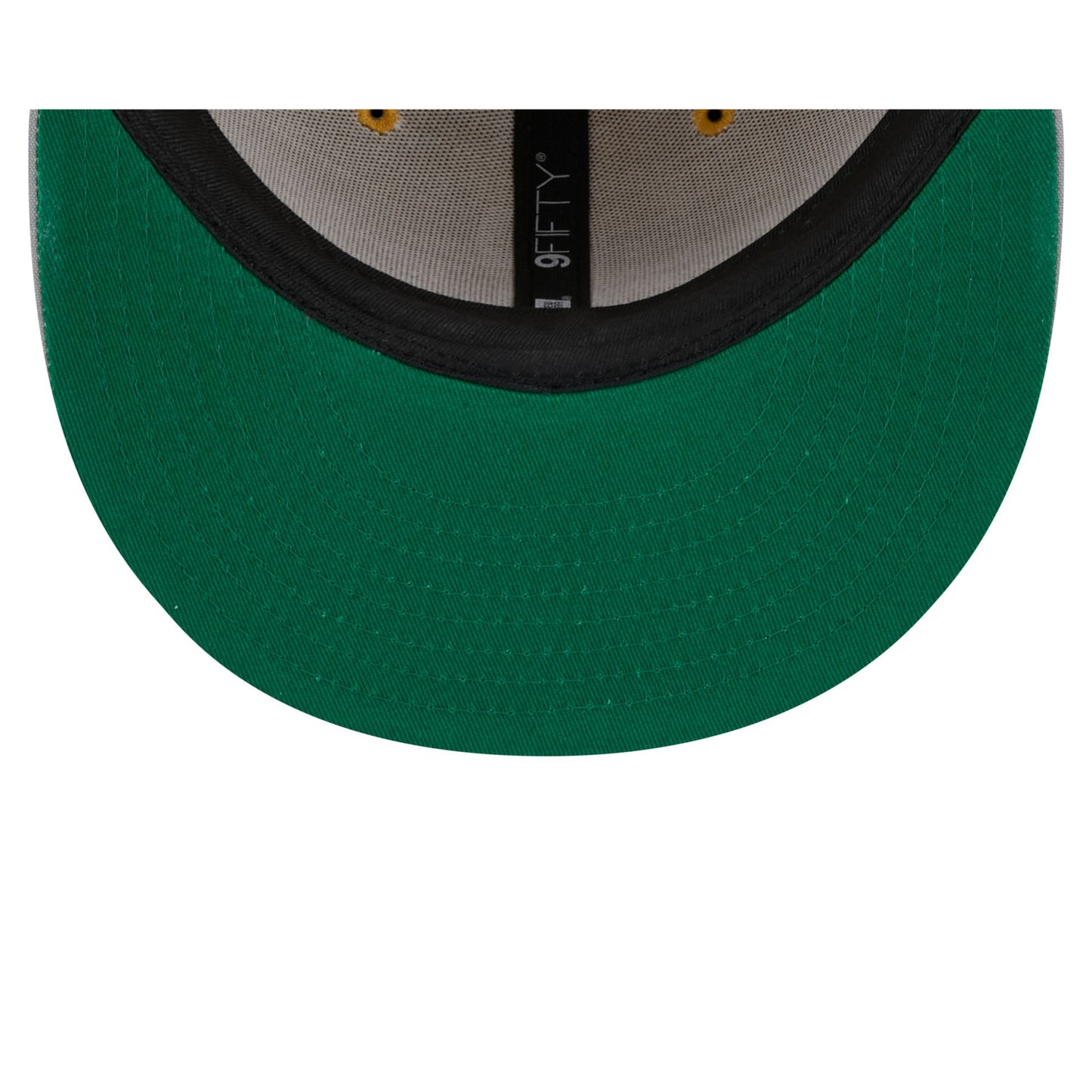 The Notre Dame Fighting Irish Helmet 9FIFTY Snapback features an embroidered Fighting Irish logo at the front panels and a helmet stripe down the middle of the crown. Additional details include a team tag on a snapback closure at the rear.