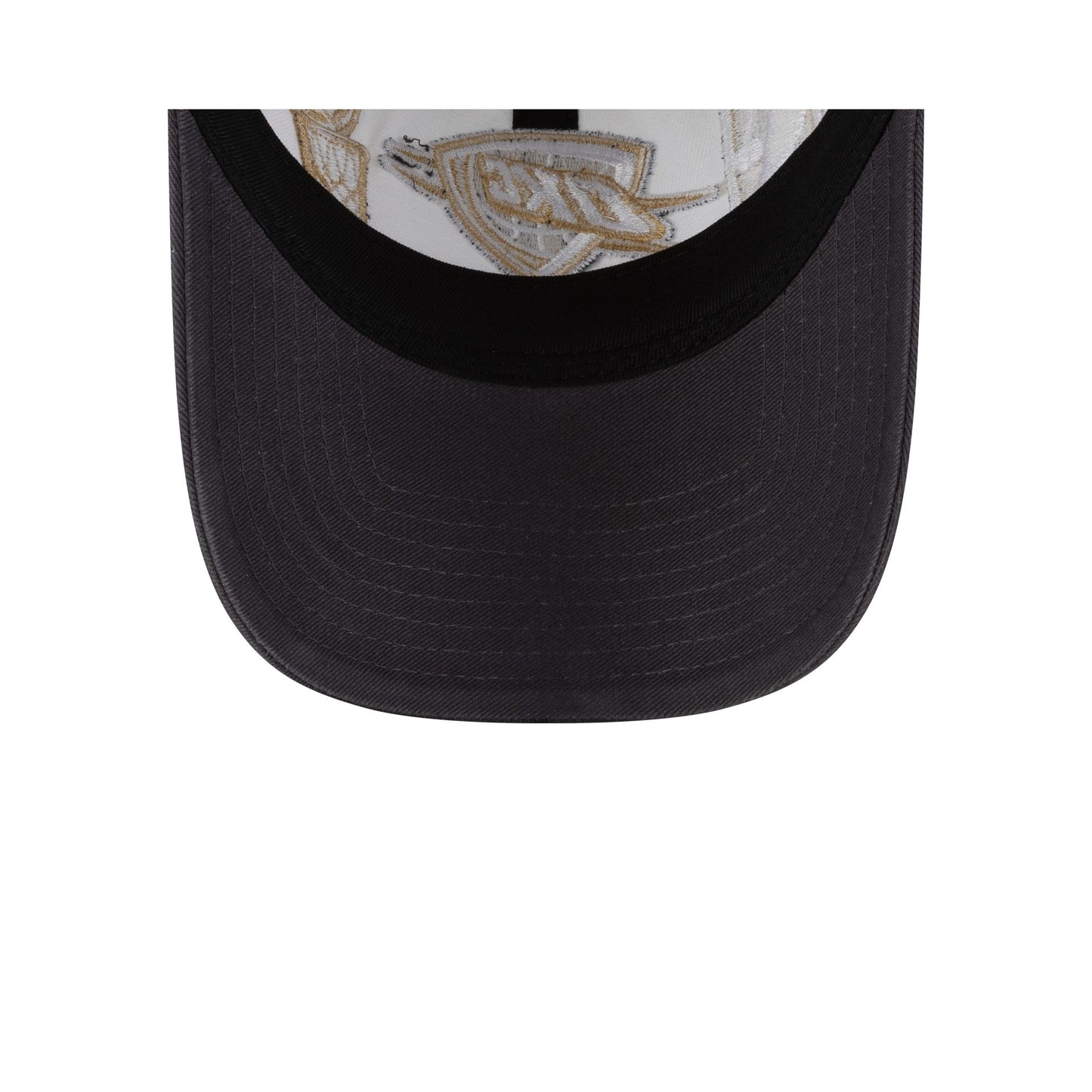 The Oklahoma City Thunder 2025 NBA Ring Ceremony 9TWENTY Adjustable Cap features an embroidered Thunder logo at the front panels with a matching NBA Logoman at the left and a Larry O'Brien Championship Trophy to the right. Additional details include a 2025 NBA Champions wordmark at the right-wear side with an adjustable D-Ring closure at the rear and a gray undervisor.