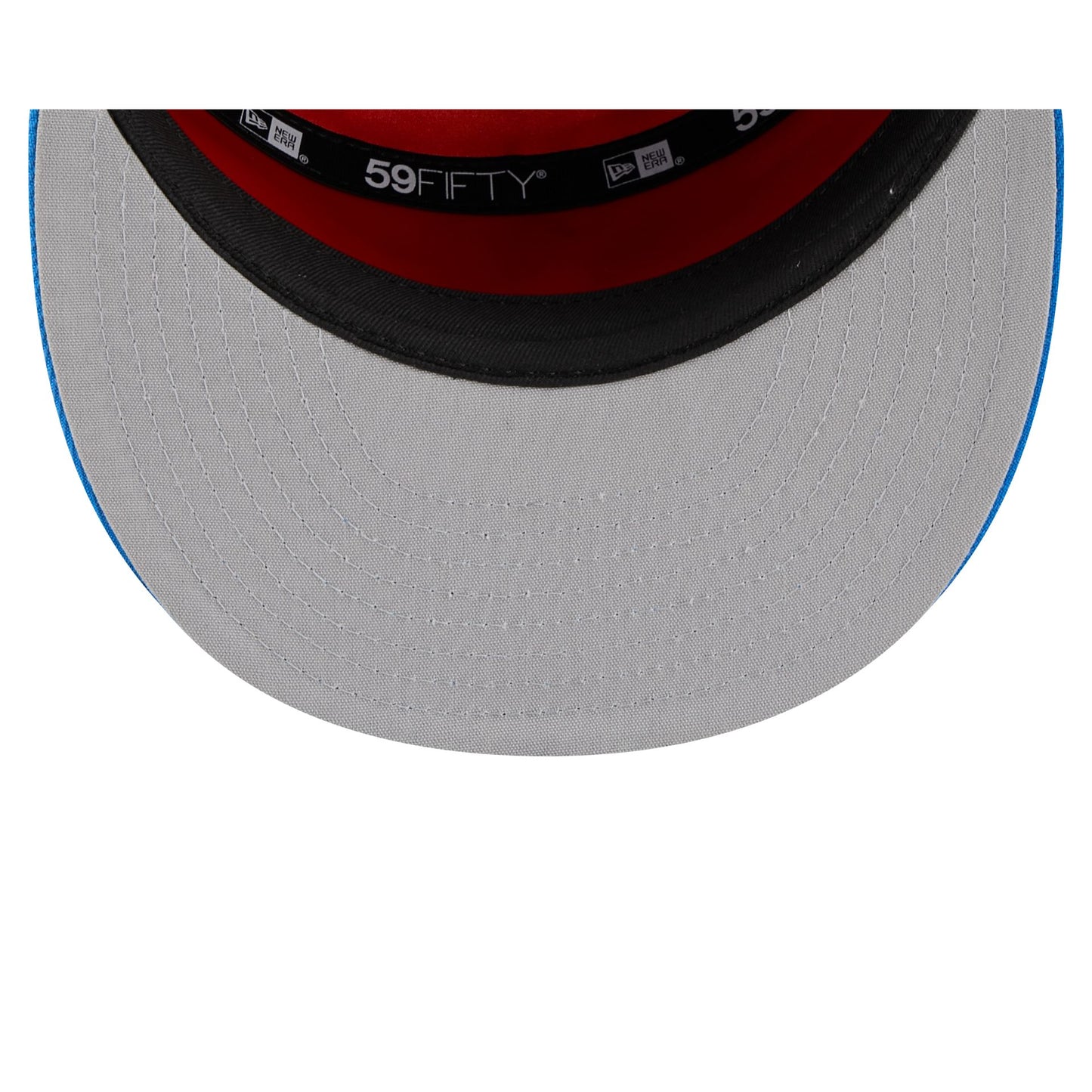 The Oklahoma City Thunder 2025 Tip-Off Split Panel 59FIFTY Fitted Cap features an embroidered Thunder logo at the front panels against a pinstripe jersey fabrication with the NBA Logoman at the right-wear side. Additional details include a team wordmark at the rear and a gray undervisor.