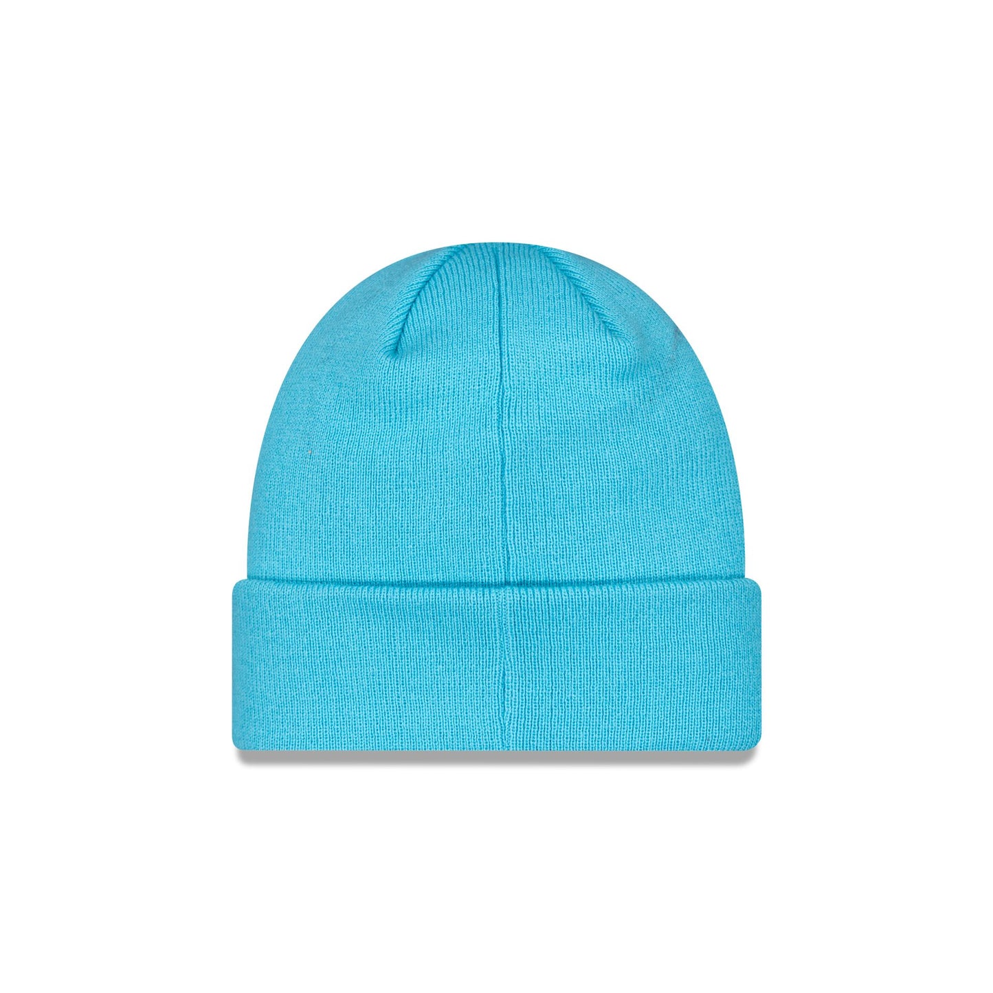 The Oracle Red Bull Racing Neon Blue Cuff Knit Hat features a rubber Oracle Red Bull Racing patch at the front.