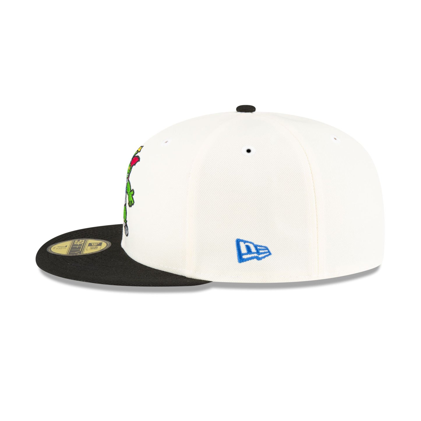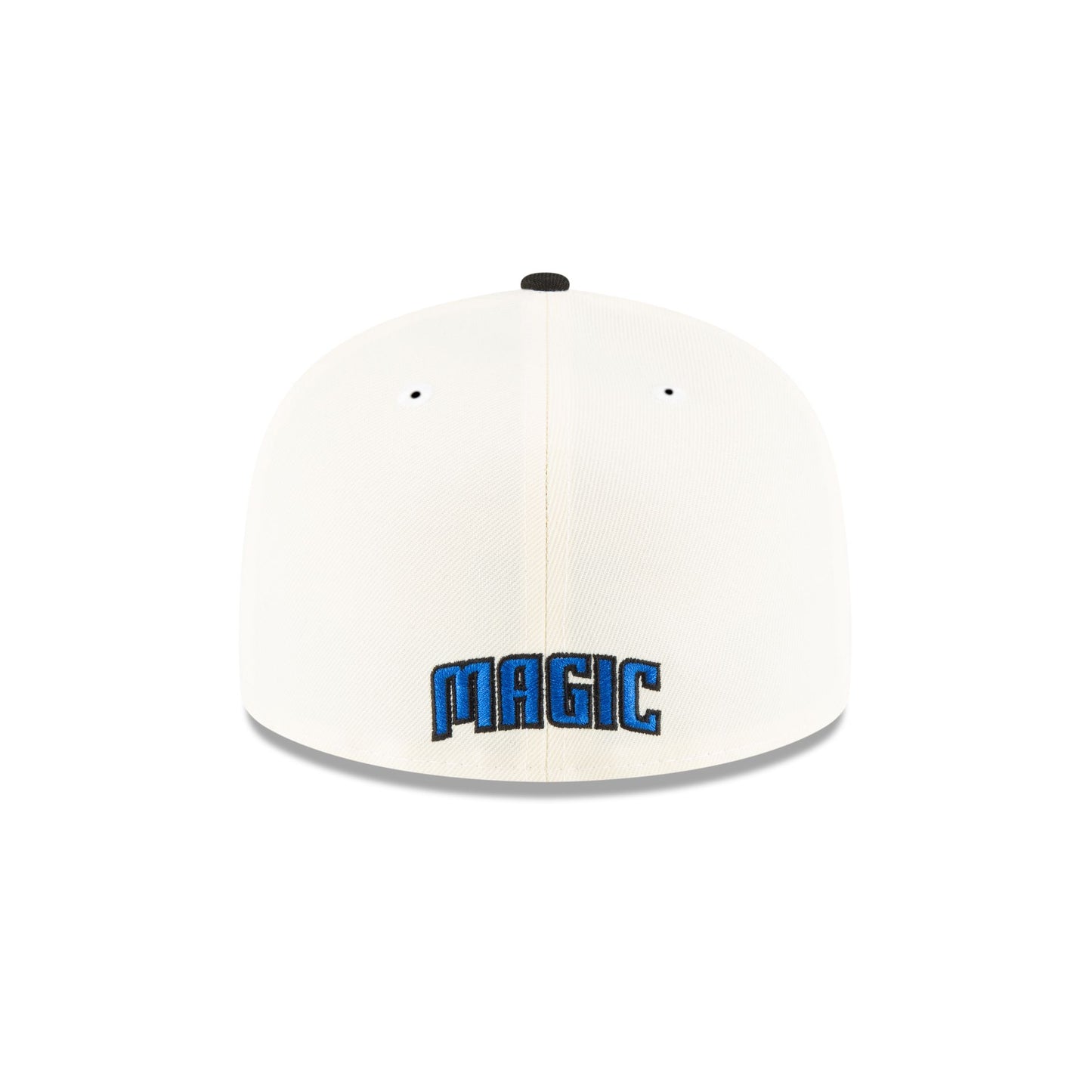 The Orlando Magic Mascot 59FIFTY Fitted Cap features an embroidered Magic mascot logo at the front panels with a matching team wordmark at the rear and a gray undervisor.