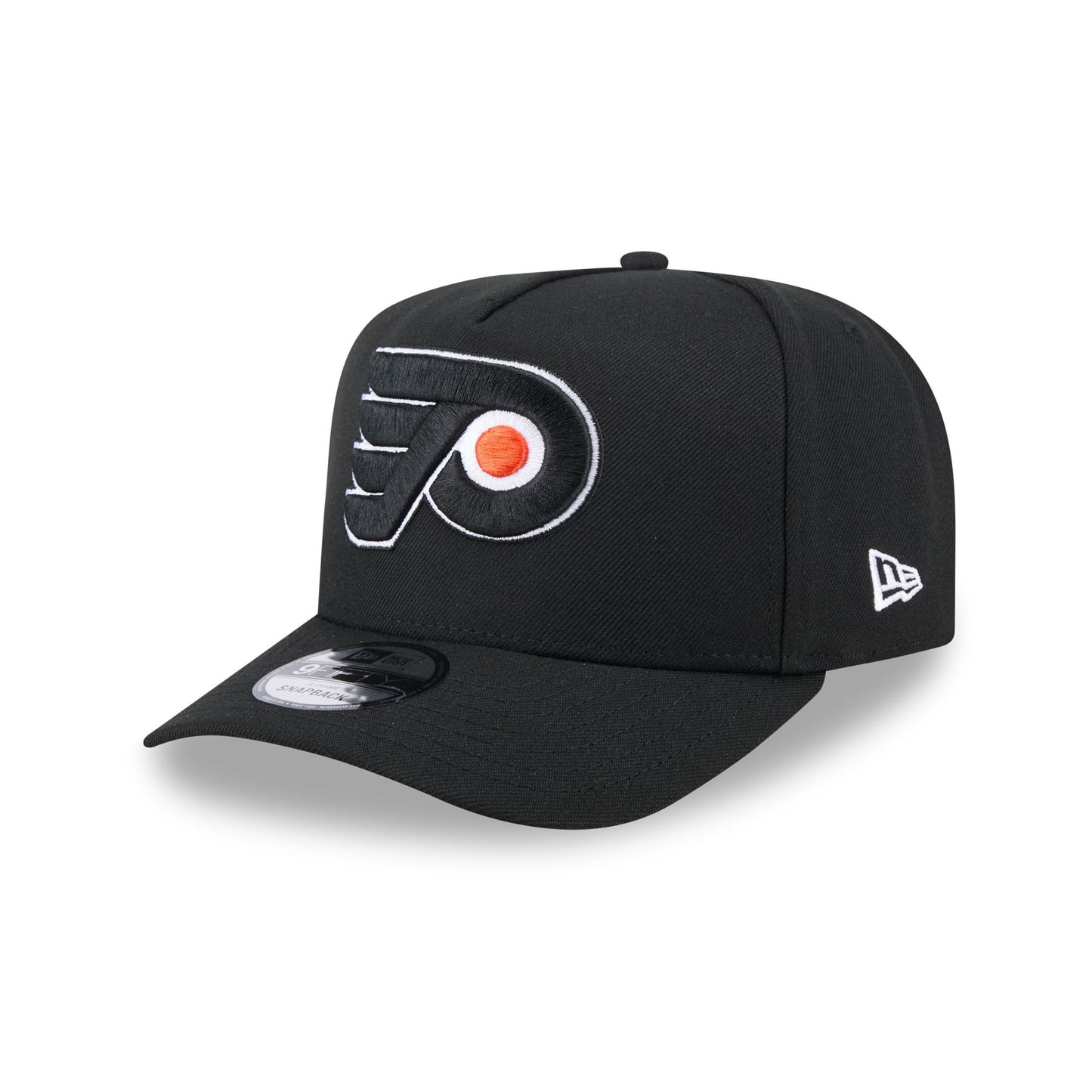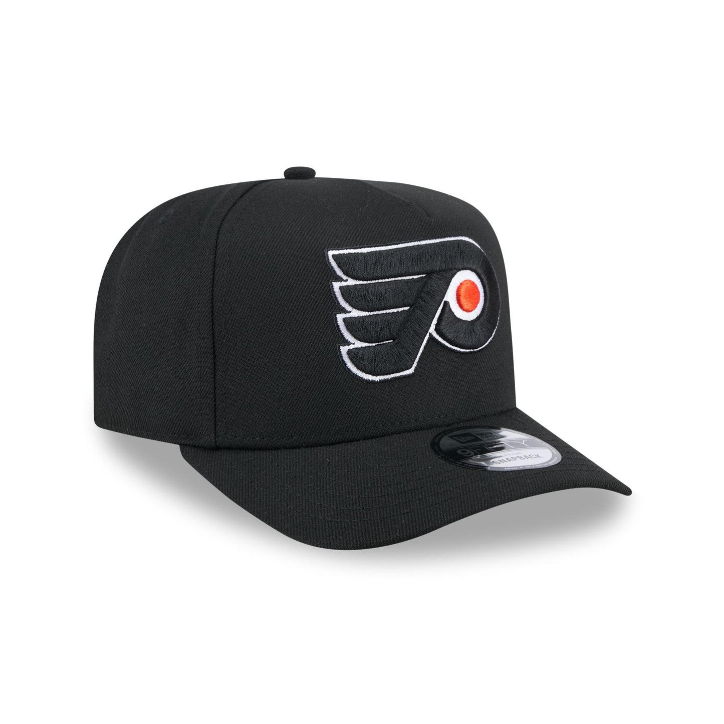 The Philadelphia Flyers Team 9FIFTY A-Frame Snapback features an embroidered Flyers logo at the front panels with a matching NHL Shield at the rear, a snapback closure at the rear, and a gray undervisor.