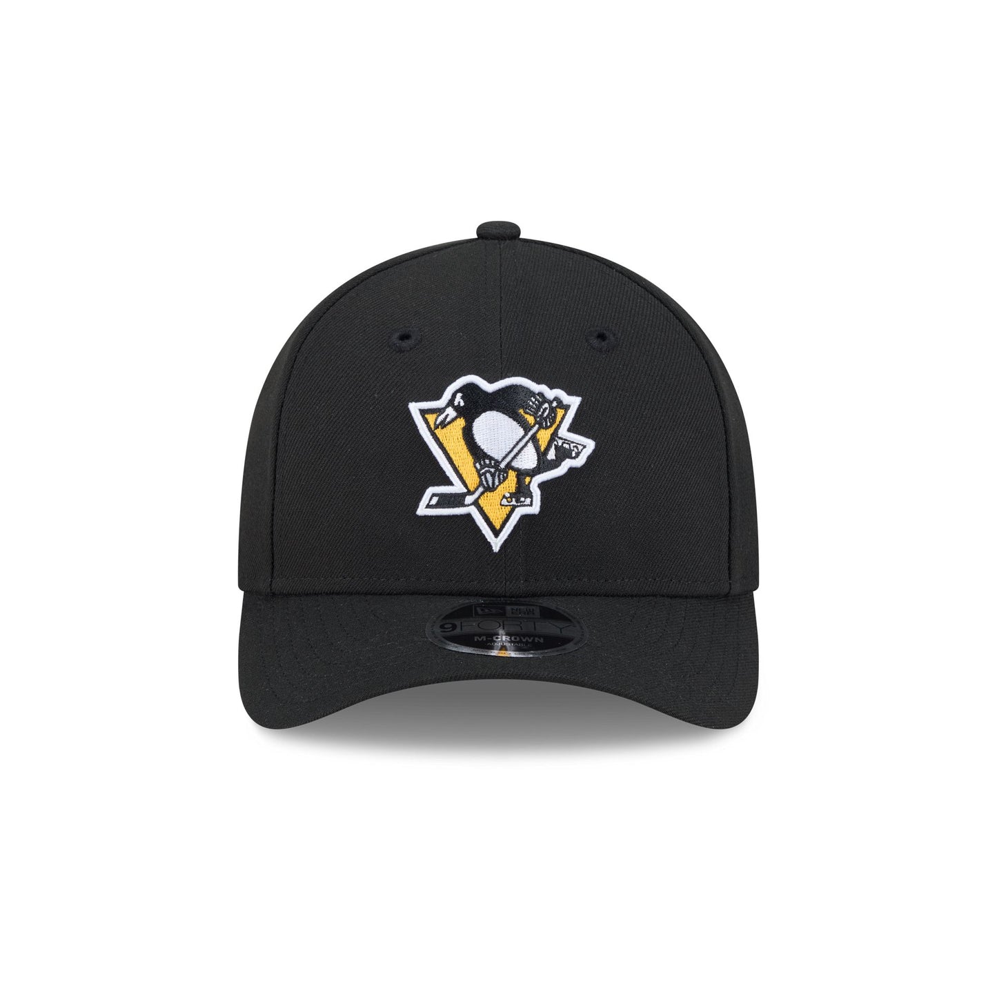 The Pittsburgh Penguins Team 9FORTY M-Crown Snapback features an embroidered Penguins logo at the front panels with the NHL Shield logo above an adjustable snapback closure at the rear and a gray undervisor.