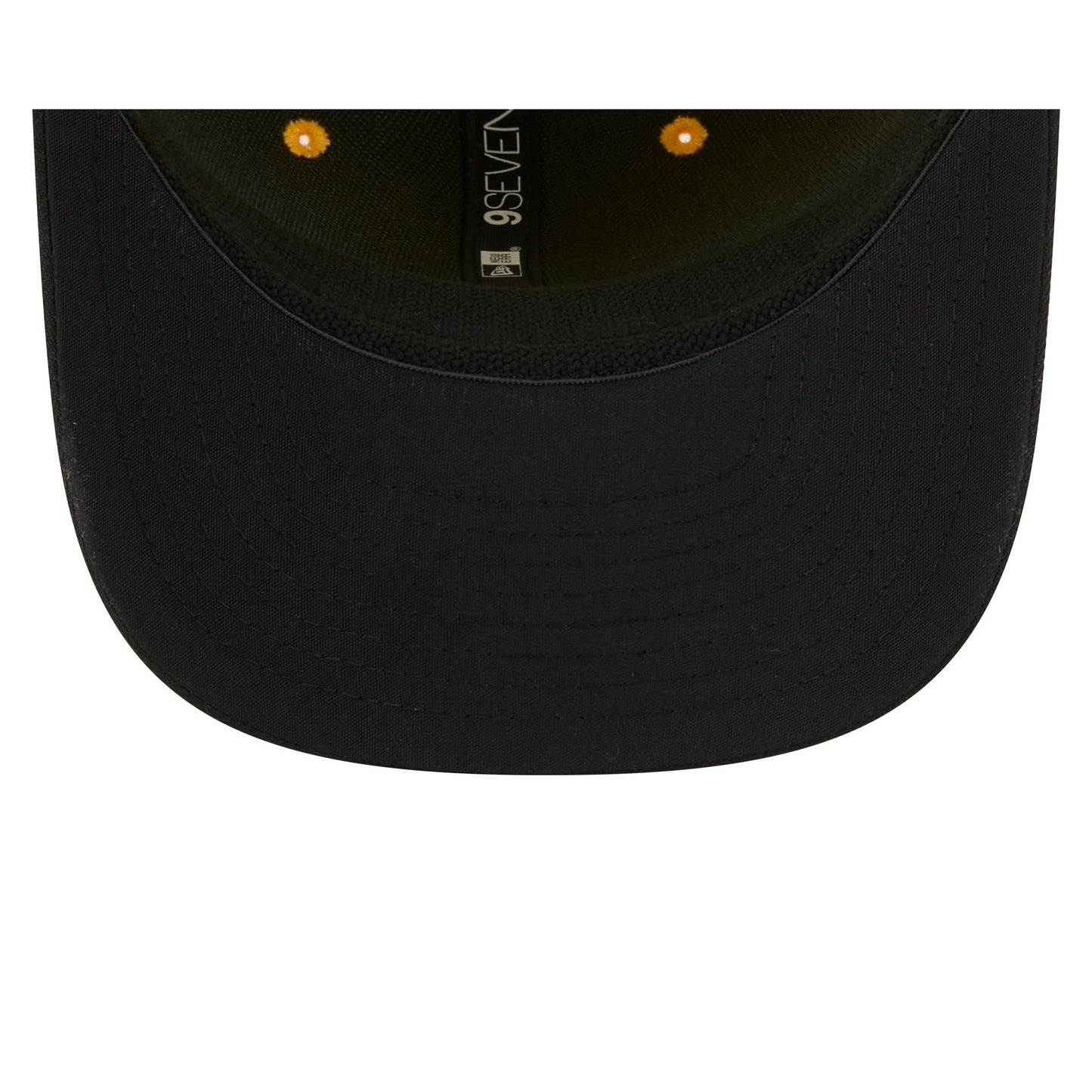 The Pittsburgh Pirates City Connect 9SEVENTY Stretch-Snap features an embroidered Pirates logo at the front panels with an MLB Batterman logo above a snapback closure at the rear and a black undervisor.