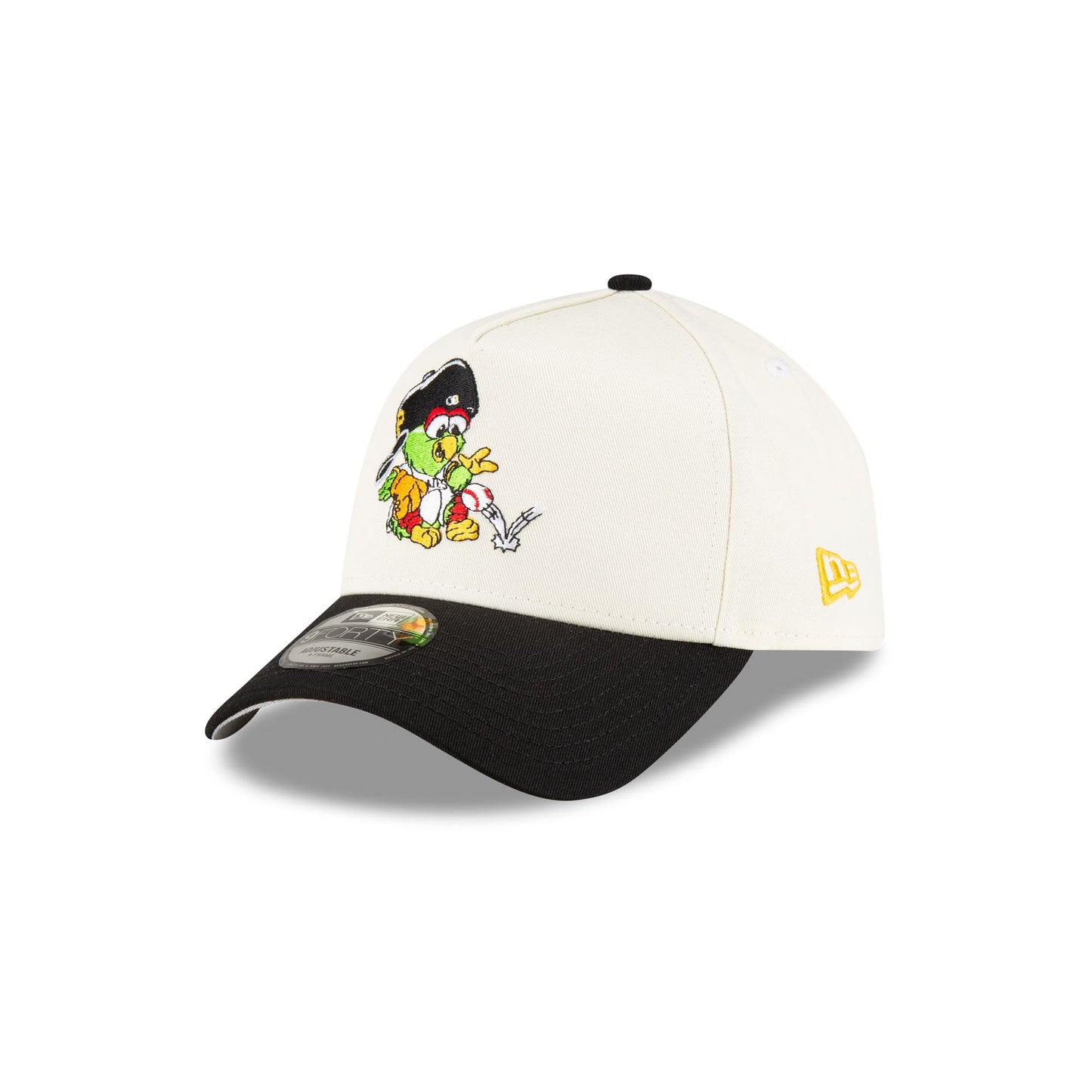 The Pittsburgh Pirates Mini Mascot 9FORTY A-Frame Snapback features an embroidered Pirates mascot at the front panels with a PNC Park patch at the right-wear side and a snapback closure at the rear.