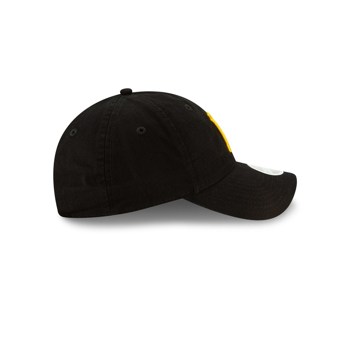 The Pittsburgh Pirates Women's Core Classic 9TWENTY Adjustable Cap features an embroidered Pirates at the front panels with a woven tab displaying the team logo and an adjustable closure at the rear.