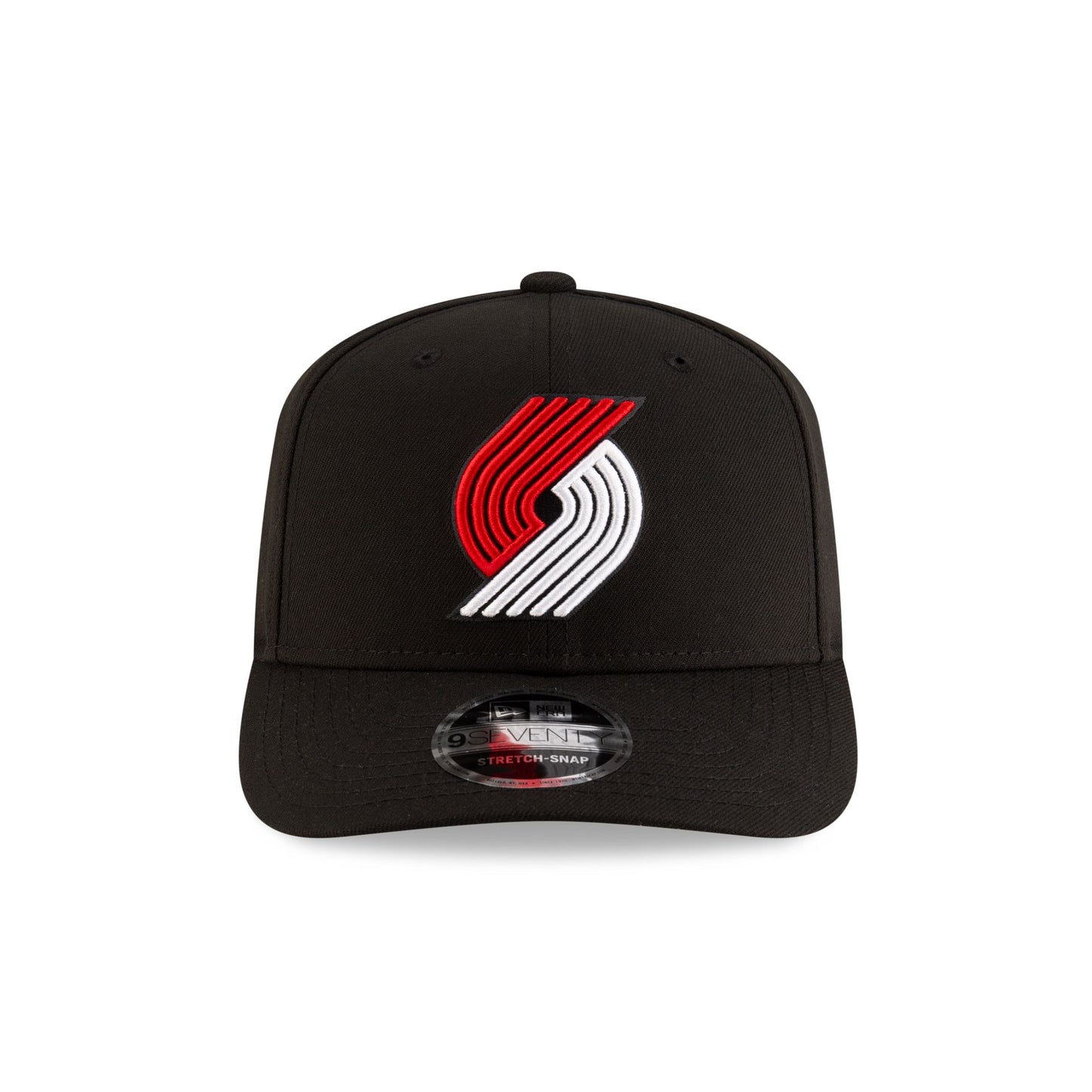 The Portland Trail Blazers Team 9SEVENTY Stretch-Snap features an embroidered Trail Blazers logo at the front panels with the NBA Logoman above an adjustable stretch-snap closure at the rear and a gray undervisor.