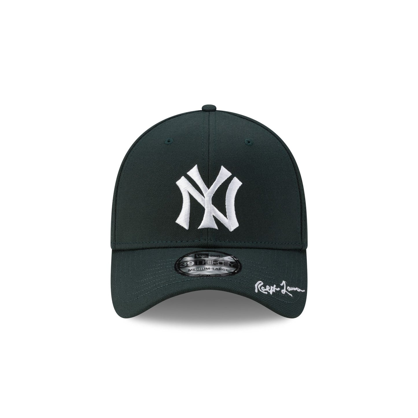 The Ralph Lauren x New York Yankees Dark Green 39THIRTY Stretch Fit features an embroidered Yankees Cooperstown logo at the front panels with a Ralph Lauren signature at the visor and a matching team wordmark above a Polo logo at the rear.