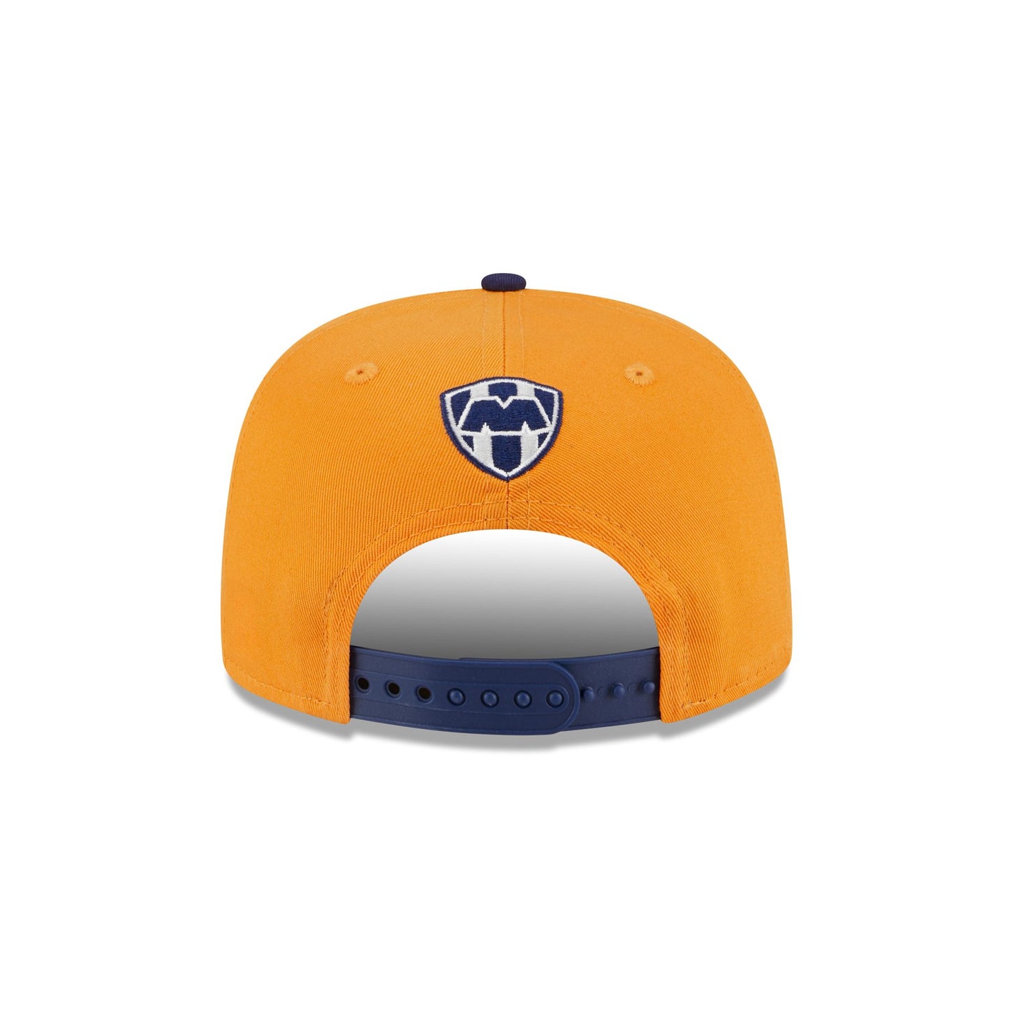 The Rayados Retro Logo Golfer features an embroidered Rayados retro navy logo at the front panels with the current team logo above a snapback closure at the rear. Additional details include the team's established date at the right-wear side, a navy undervisor, and a duel colored crown.