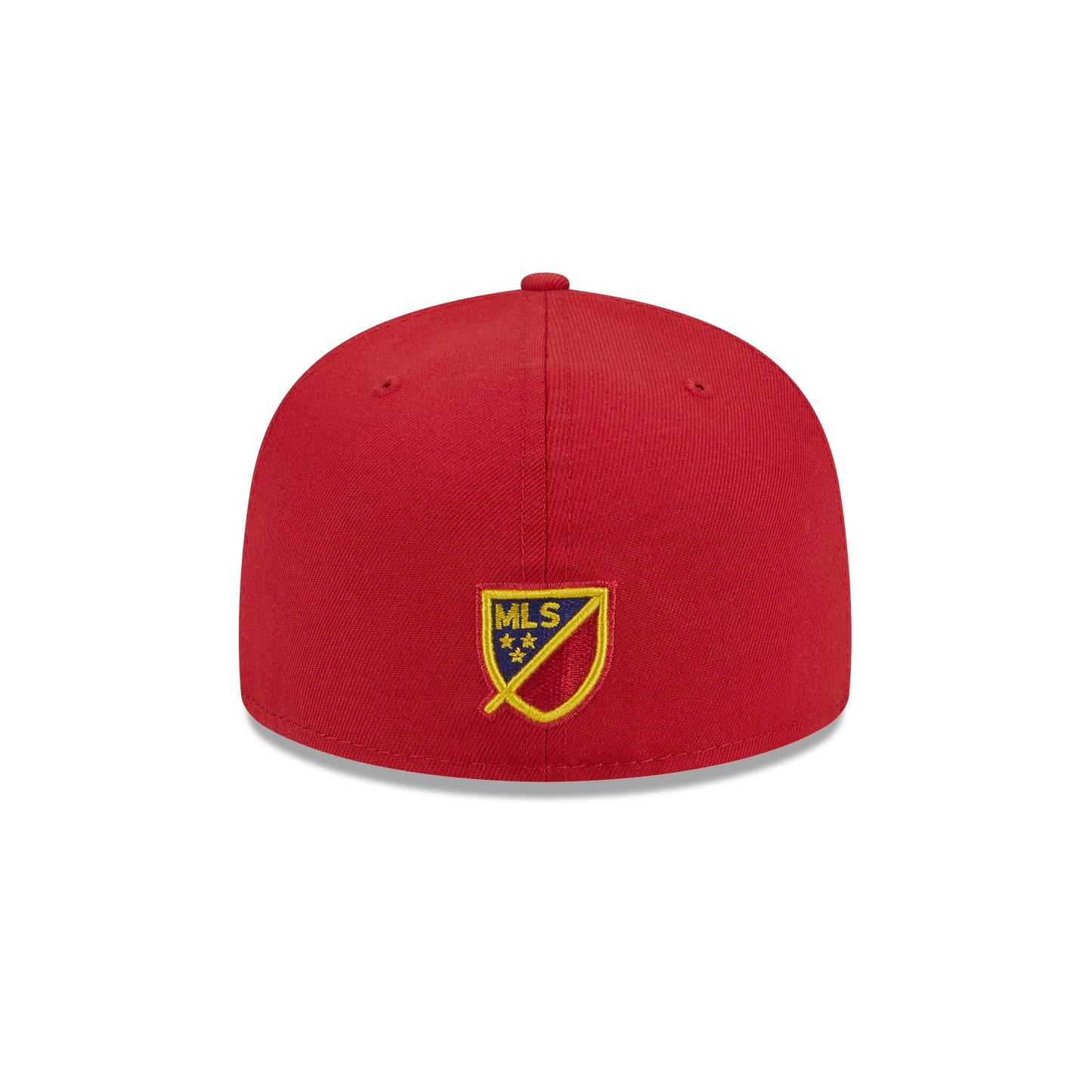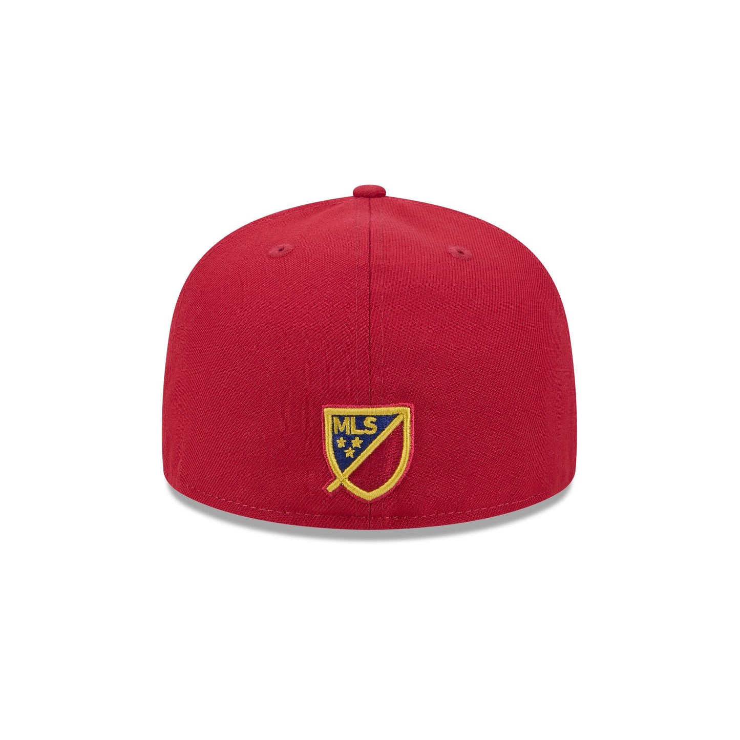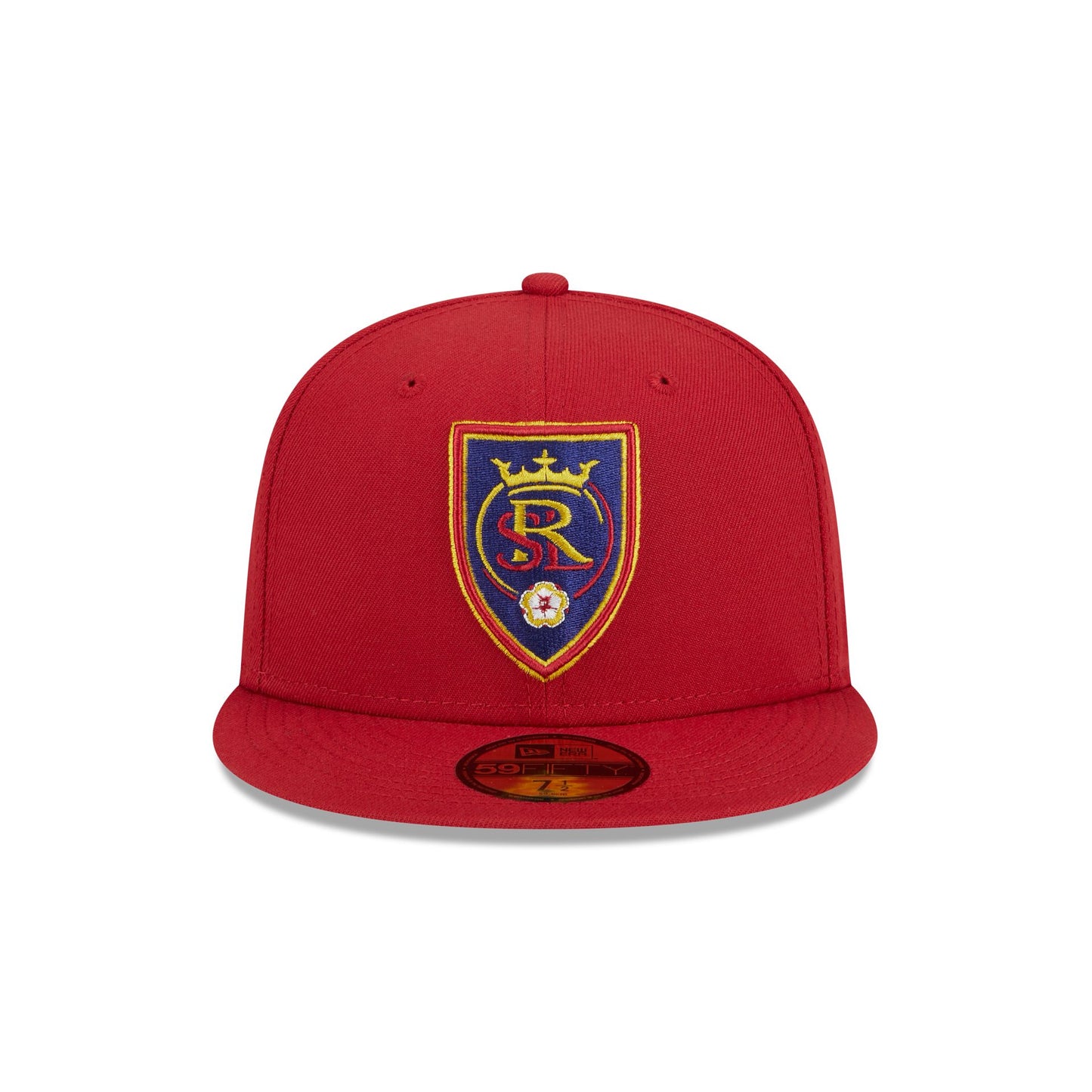 The Real Salt Lake Team 59FIFTY Fitted Cap features an embroidered Real Salt Lake logo at the front panels with a matching MLS Shield at the rear and a gray undervisor.