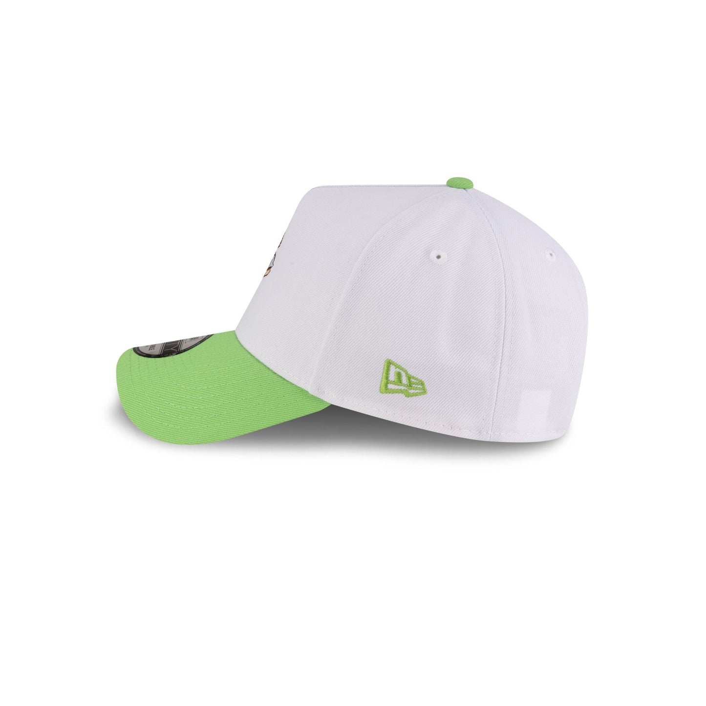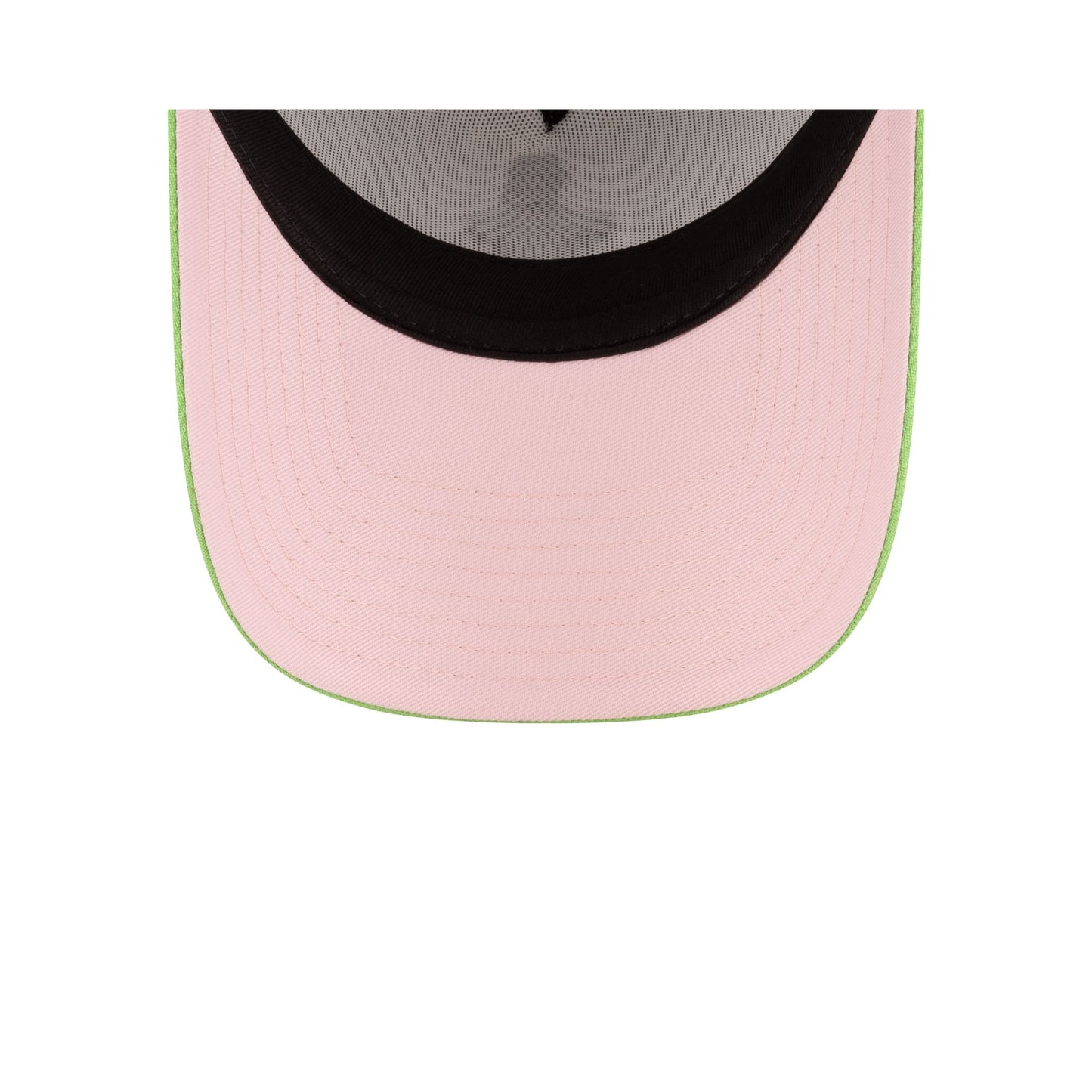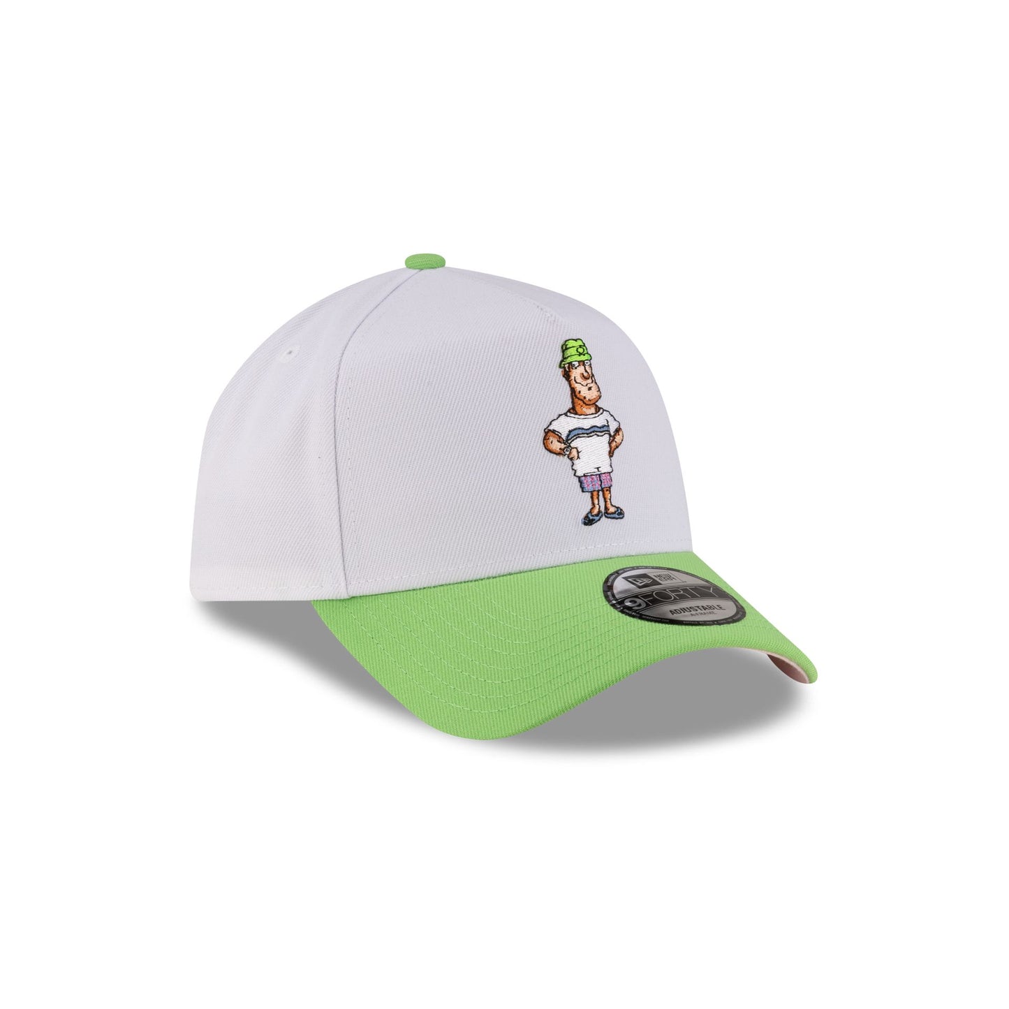 The Rocket Power Ray 9FORTY A-Frame Snapback features an embroidered Rocket Power Ray character graphic at the front panels with a Rocket Power logo above a snapback closure at the rear and a pink undervisor.