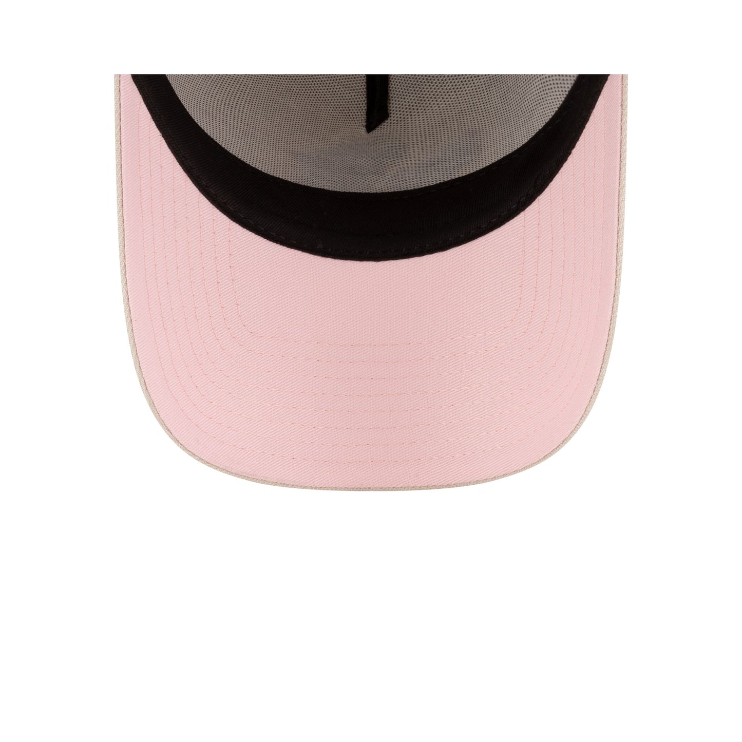 The Rocket Power Reggie 9FORTY A-Frame Snapback features an embroidered Rocket Power Regina character graphic at the front panels with a Rocket Power logo above a snapback closure at the rear and a pink undervisor.