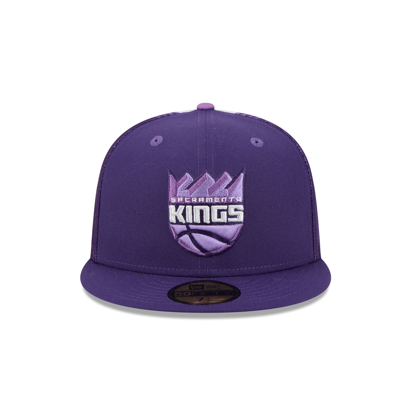 The Sacramento Kings 2025 City Edition 59FIFTY Fitted Cap features an embroidered Kings City Edition logo at the front panels with a logo at the right-wear side. Additional details include the NBA Logoman at the rear and a gray undervisor.