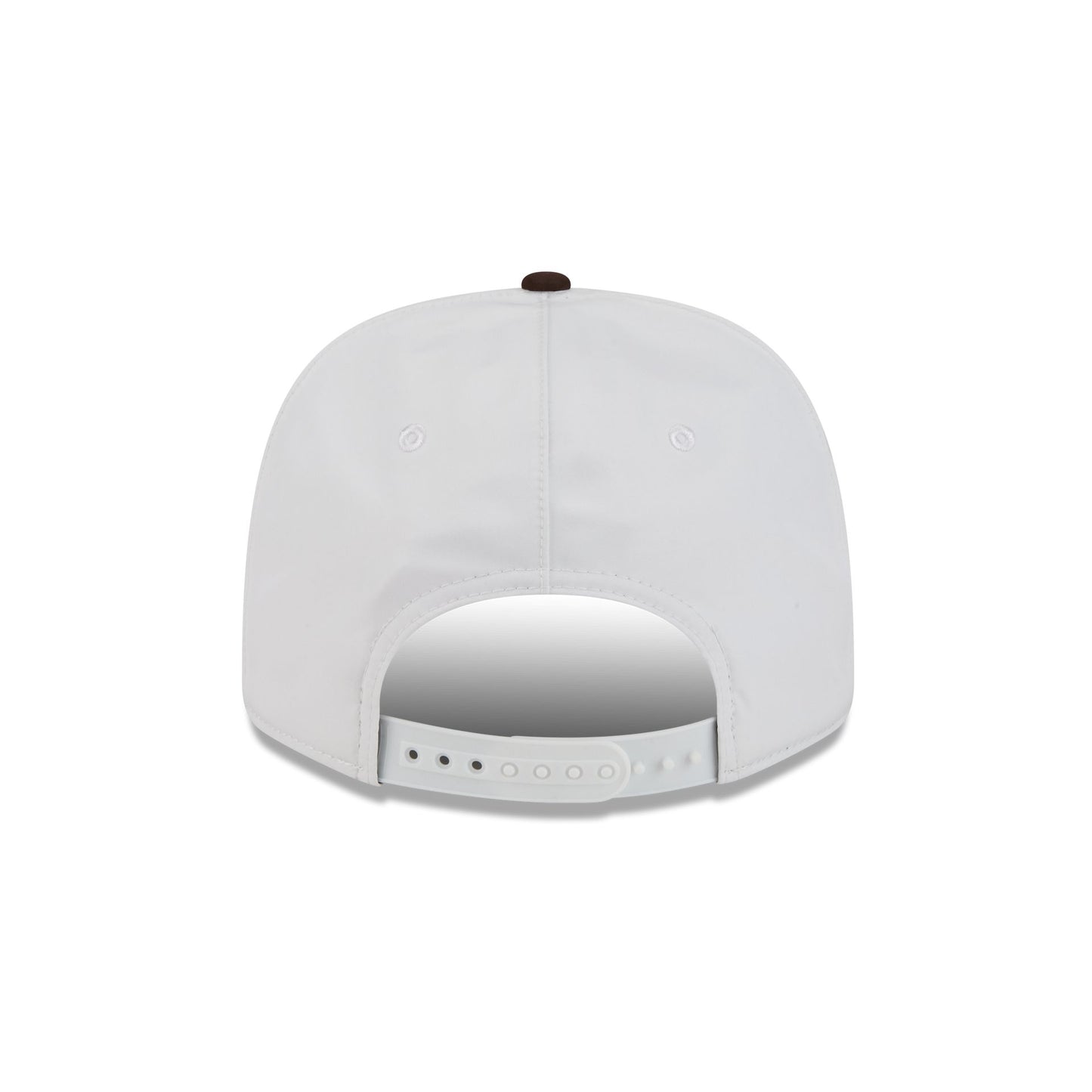 The San Diego Padres GORE-TEX White 9SEVENTY Stretch-Snap features an embroidered Padres logo at the front panels with a metallic sheen silicone New Era Flag logo and GORE-TEX logo at the left-wear side. Additional details include an adjustable snapback closure at the rear, a gray undervisor, and a polyester fabrication throughout the cap. It is waterproof, breathable, and lightweight.