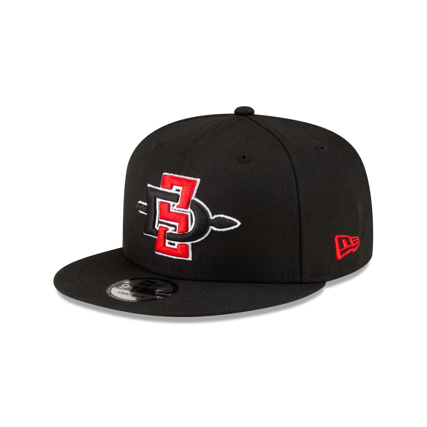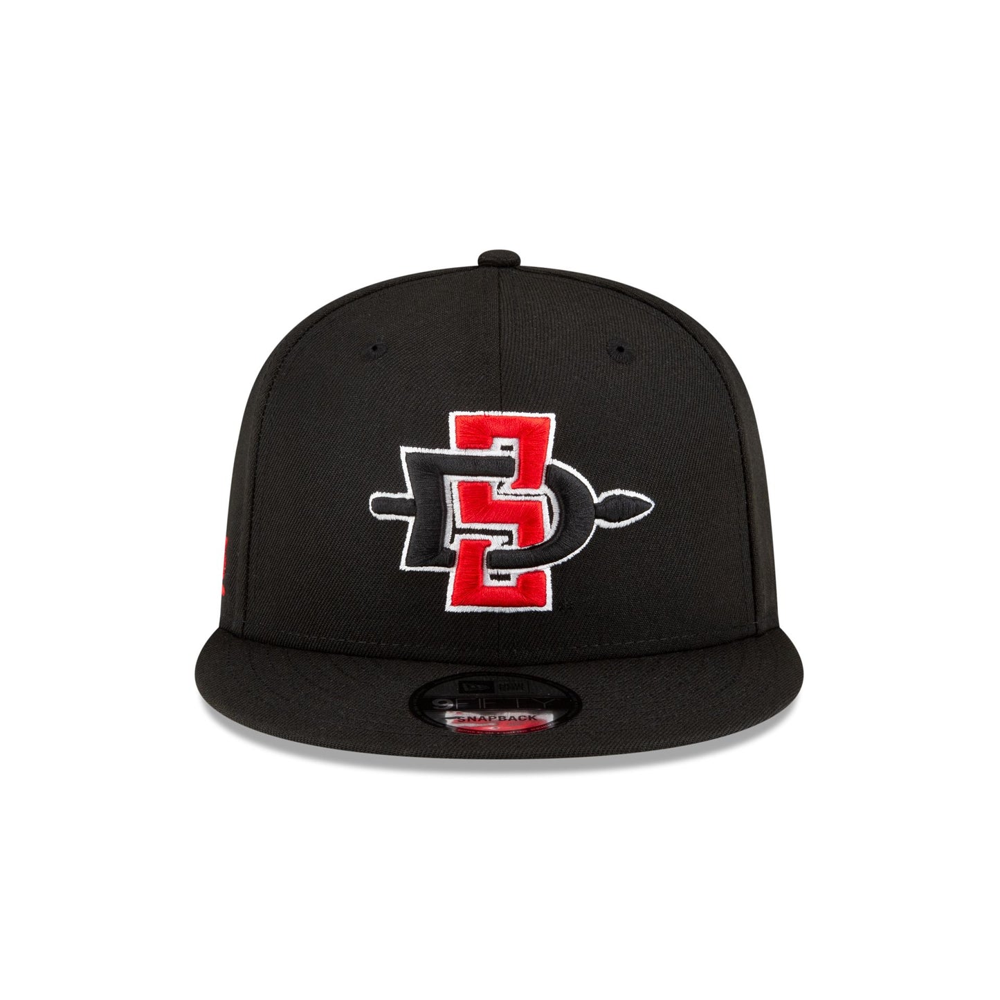 The San Diego State Aztecs 9FIFTY Snapback features an embroidered Aztecs logo at the front panels with a team wordmark at the right-wear side, a gray undervisor, and a snapback closure at the rear.