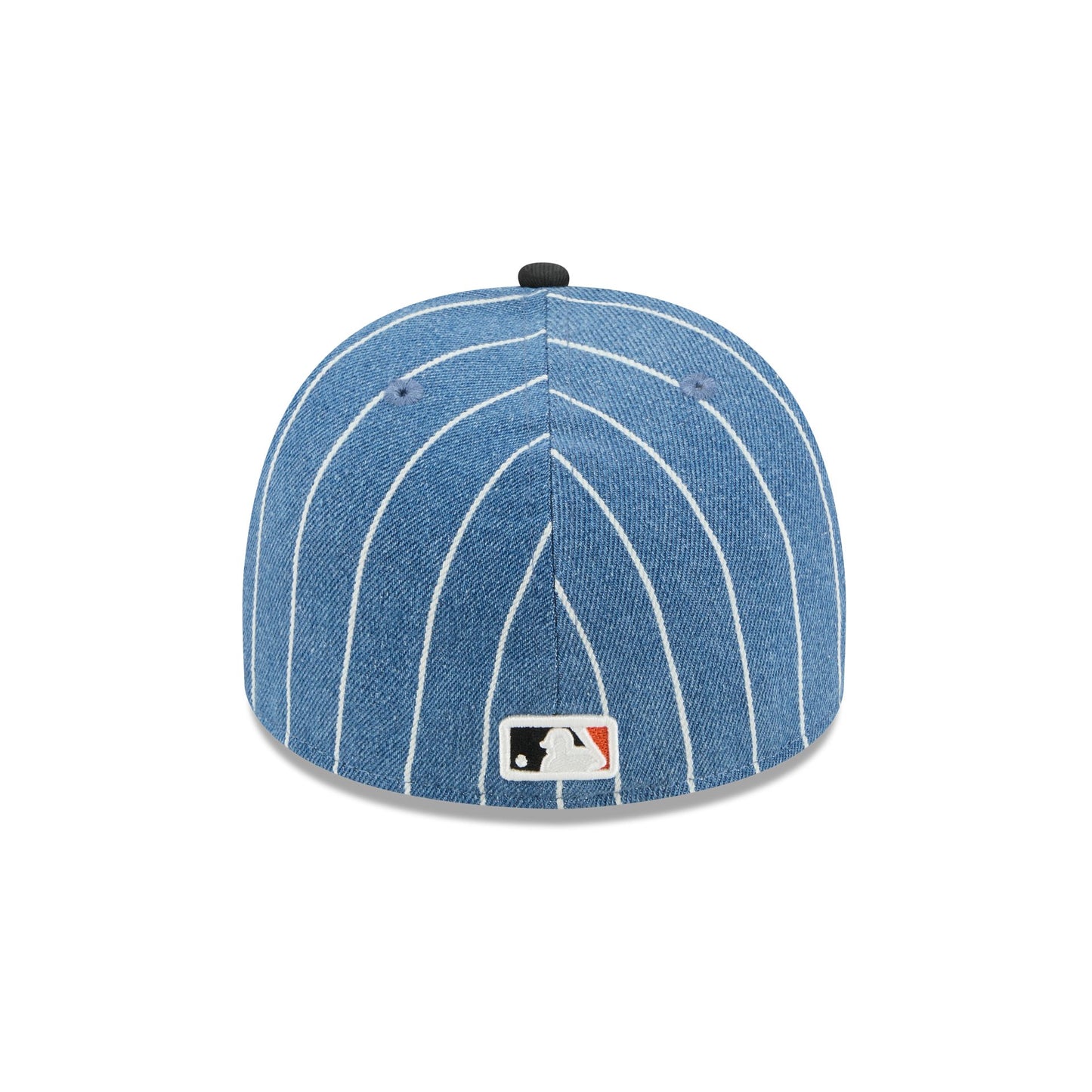 The San Francisco Giants Parallel 59FIFTY A-Frame Fitted Cap features an embroidered Giants parallel stitch logo at the front panels against a denim pinstripe fabrication throughout. Additional details include a matching MLB Batterman logo at the rear and a gray undervisor.