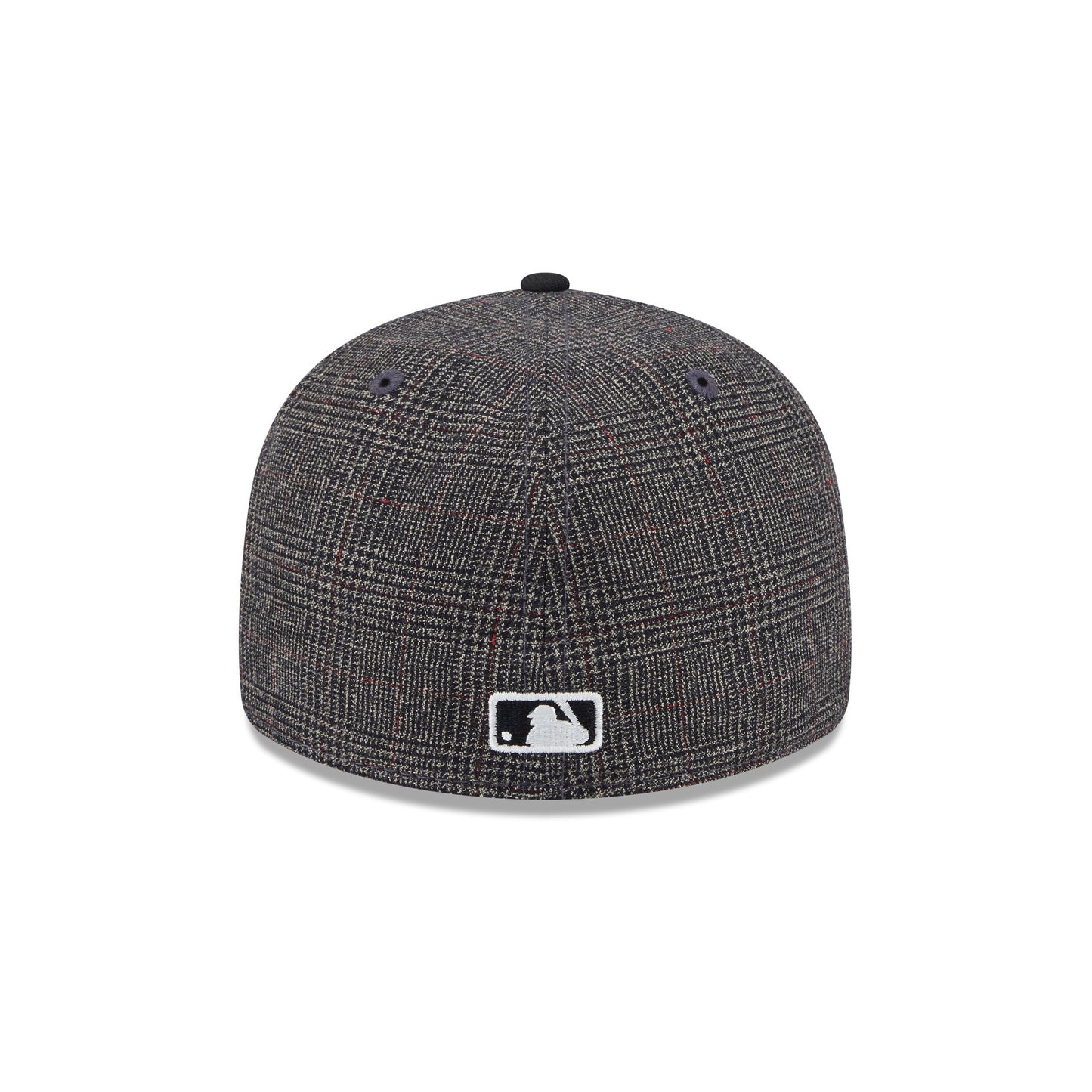 The San Francisco Giants Plaid Retro Crown 59FIFTY Fitted Cap features a stitch down applique Giants logo at the front panels with a matching MLB Batterman logo at the rear and a gray undervisor.
