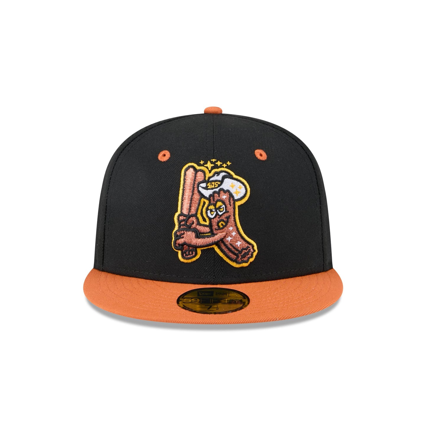 The San Jose Giants Copa de la Diversión 59FIFTY Fitted Cap features an embroidered Churros logo at the front panels with a matching MiLB Batterman logo at the rear.