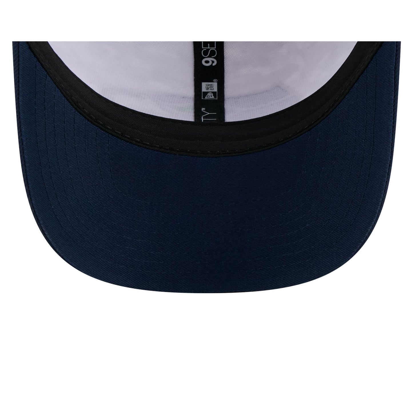 The Seattle Seahawks 2025 Salute to Service Fan Gear 9SEVENTY Stretch-Snap Cap features an embroidered Seahawks logo at the front panels with the official NFL Salute to Service patch above a snapback closure at the rear, an American flag patch at the right-wear side, and a team color visor.