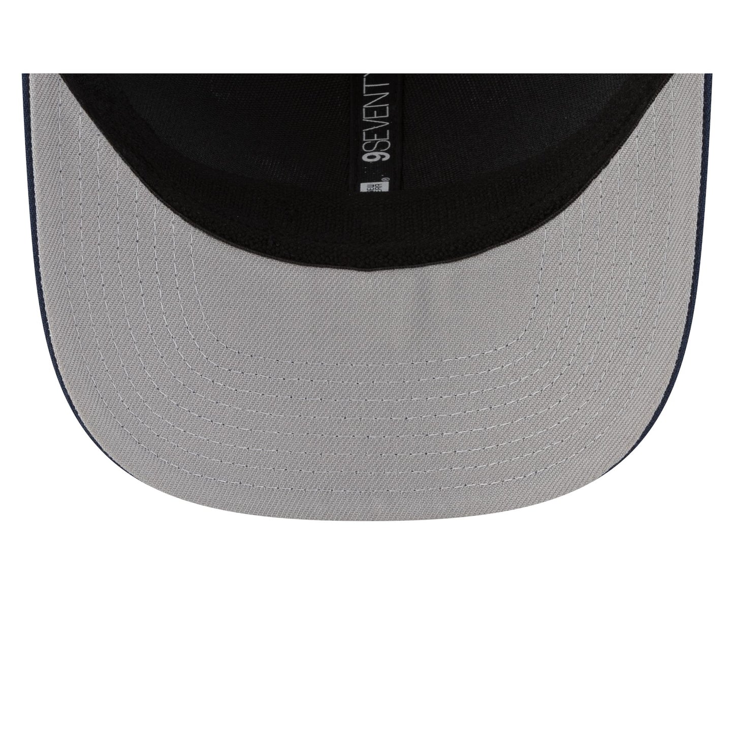 The Seattle Seahawks Mascot 9SEVENTY Trucker features an embroidered Seahawks mascot at the front panels with a matching team logo at the right-wear side, an adjustable snapback closure at the rear, and a gray undervisor.