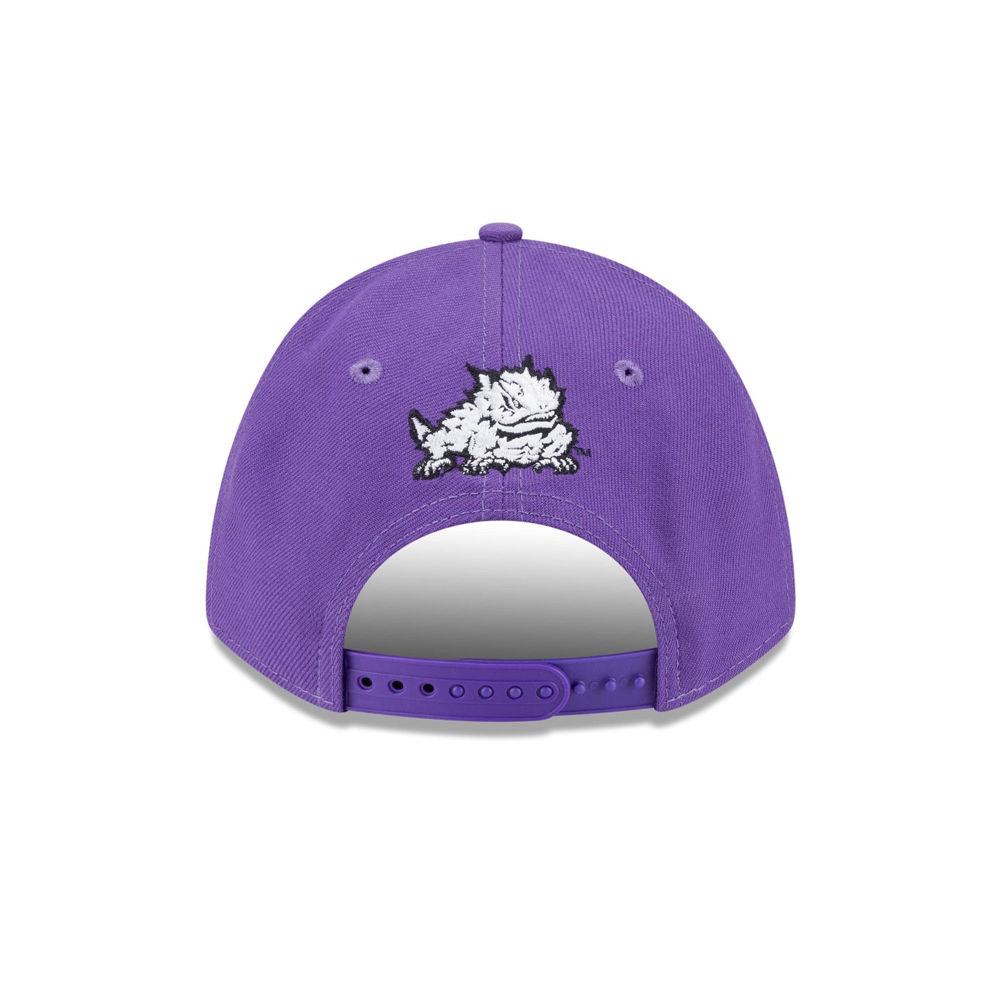 The TCU Horned Frogs Team 9FORTY M-Crown Snapback features an embroidered Horned Frogs logo at the front panels with an alternate team logo above a snapback closure at the rear and a gray undervisor.