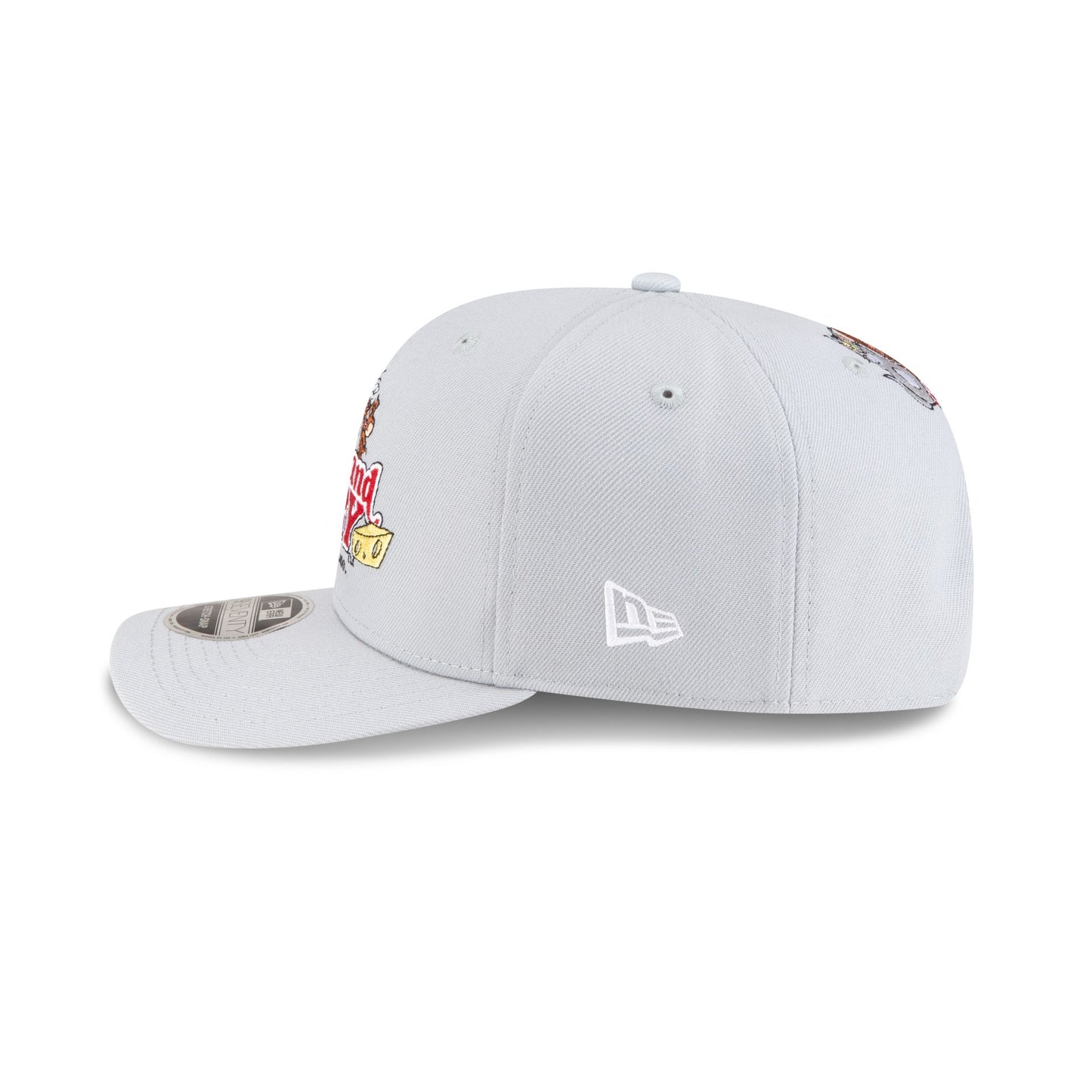 The Tom and Jerry 85th Anniversary 9SEVENTY Stretch-Snap features an embroidered Tom and Jerry Frenemies Forever design at the front panels with a patch at the right-wear side. Additional details include a snapback closure at the rear and a gray undervisor.