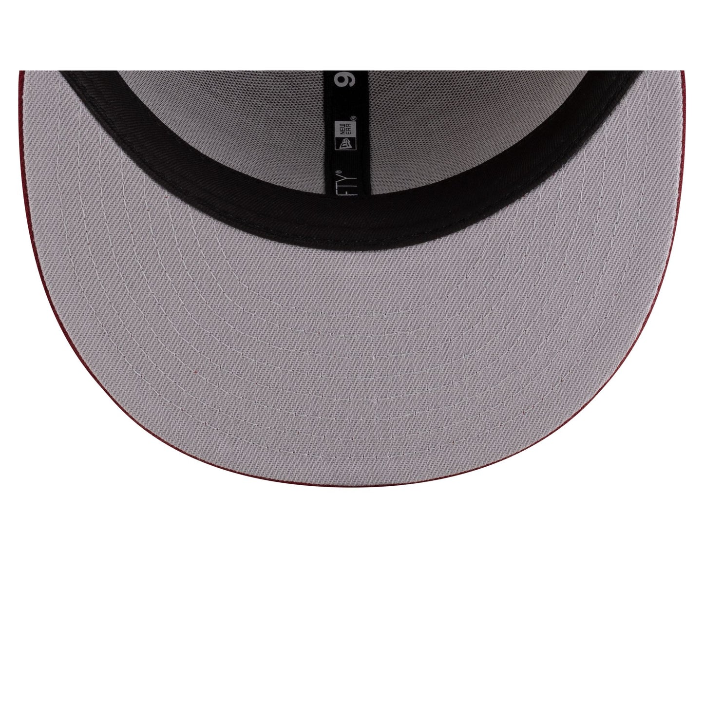 The Tuskegee Golden Tigers Red 9FIFTY Snapback Cap features an embroidered Golden Tigers logo at the front panels with a logo at the right-wear side, a snapback closure at the rear and a gray undervisor.