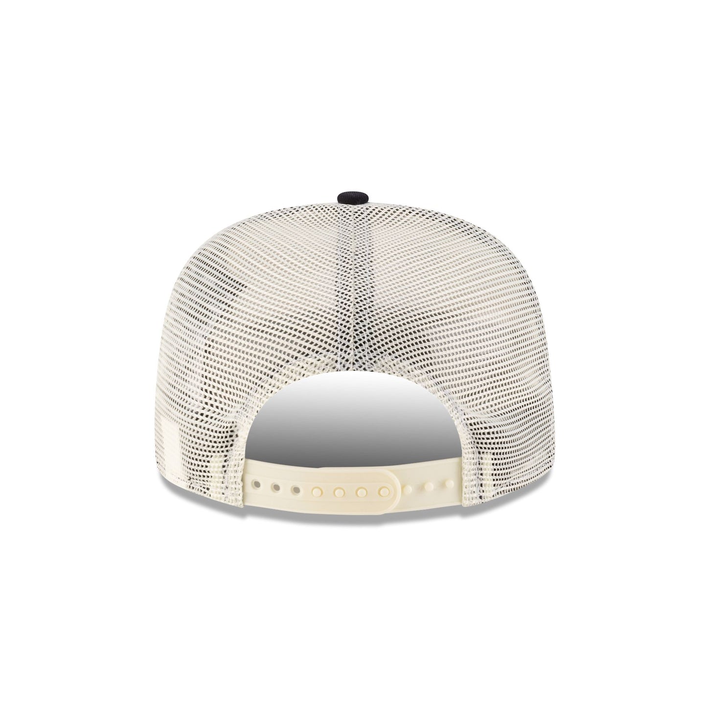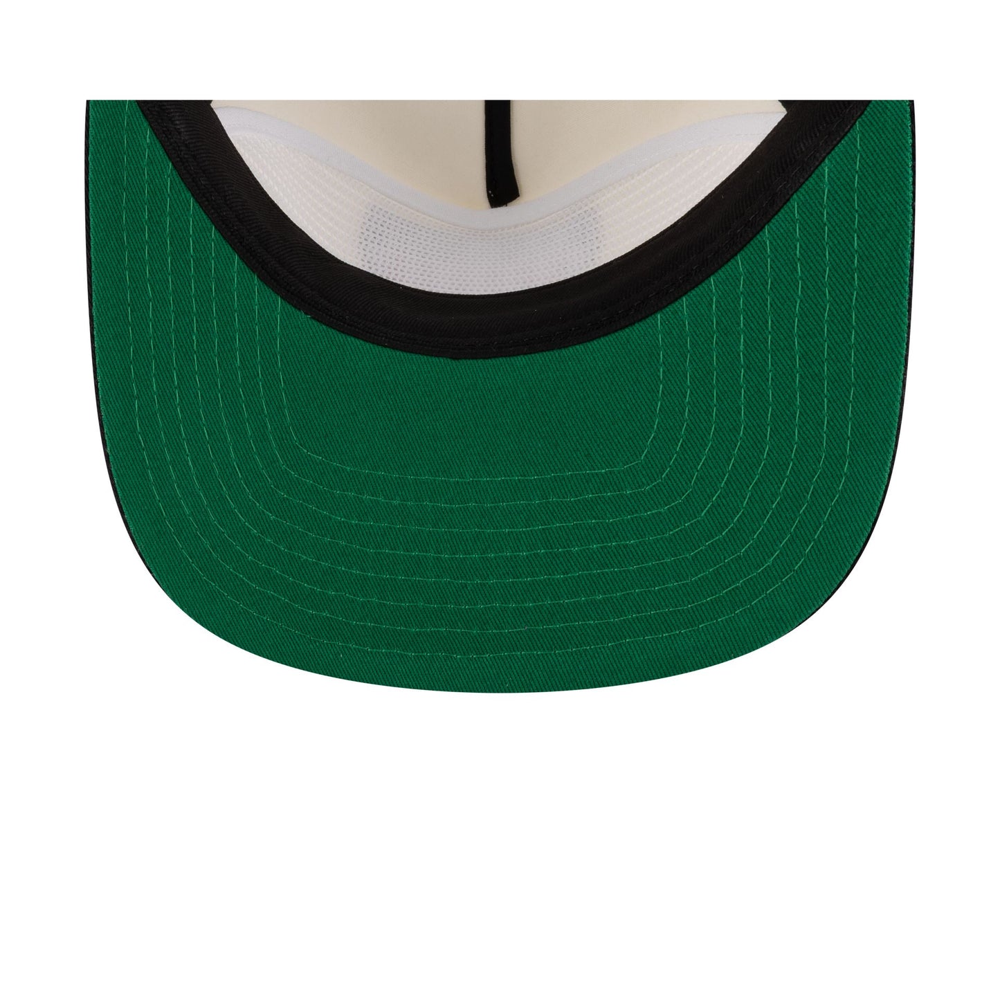 The U.S. Soccer Retro 1950 Golfer Trucker features an embroidered 1950 logo at the front panels with a rope at the visor. Additional details include a snapback closure at a mesh rear and a green undervisor.