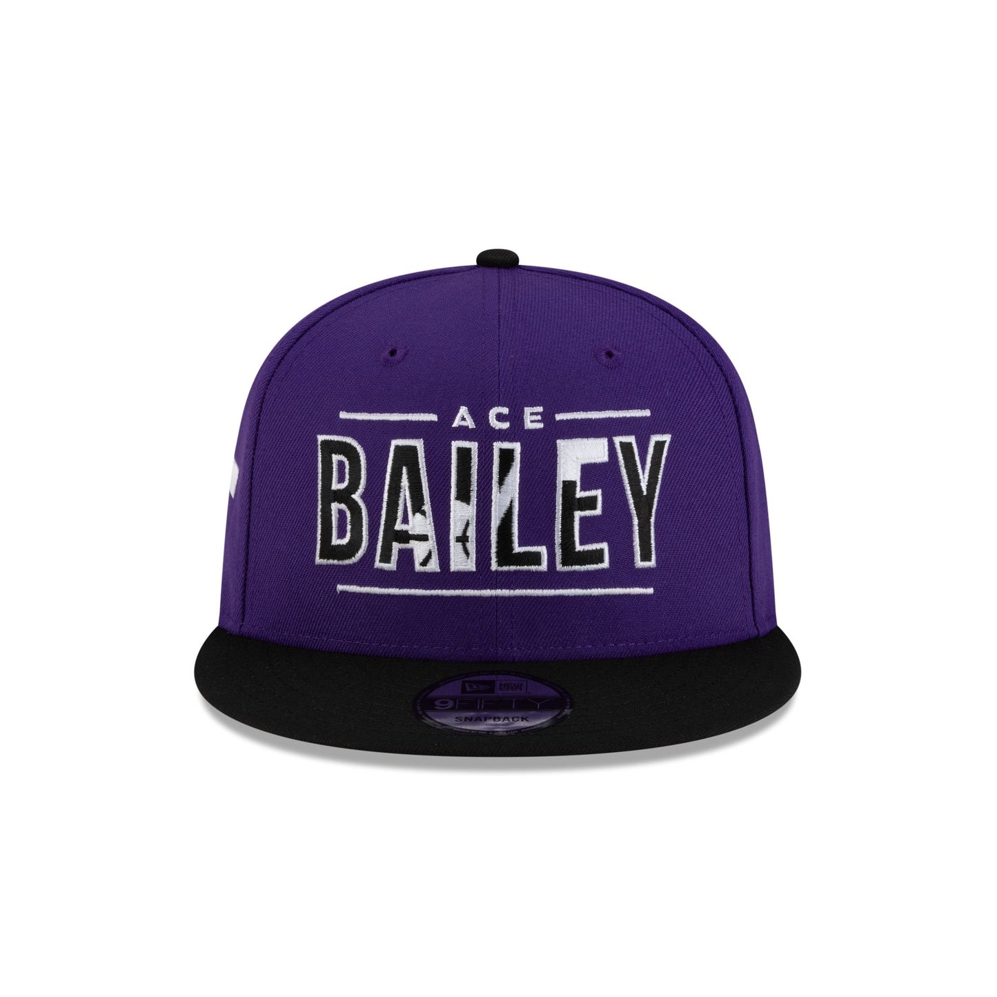 The Utah Jazz Ace Bailey Wordmark 9FIFTY Snapback features an embroidered Jazz Ace Bailey wordmark at the front panels with a team logo at the right-wear side and a snapback closure at the rear.