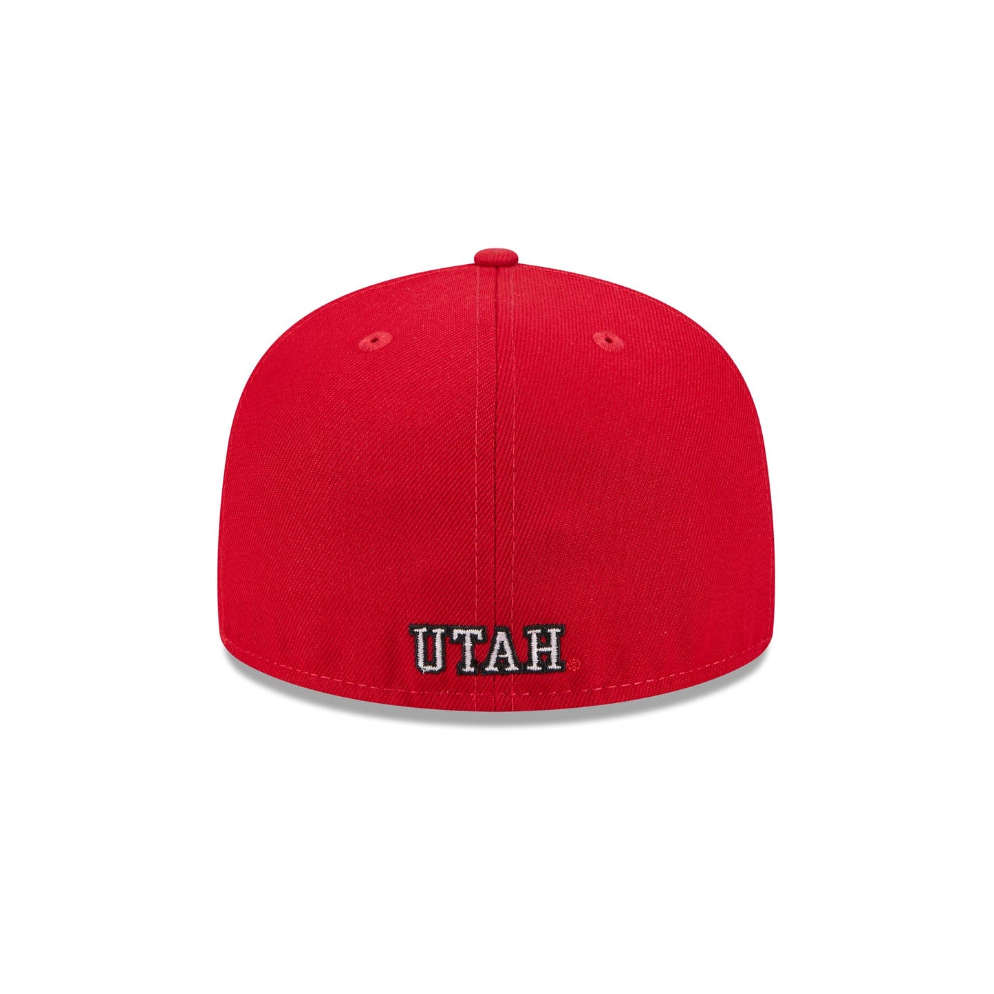 The Utah Utes Go-To 59FIFTY Fitted Cap features an embroidered Utes logo at the front panels with a matching team wordmark at the rear and a gray undervisor.