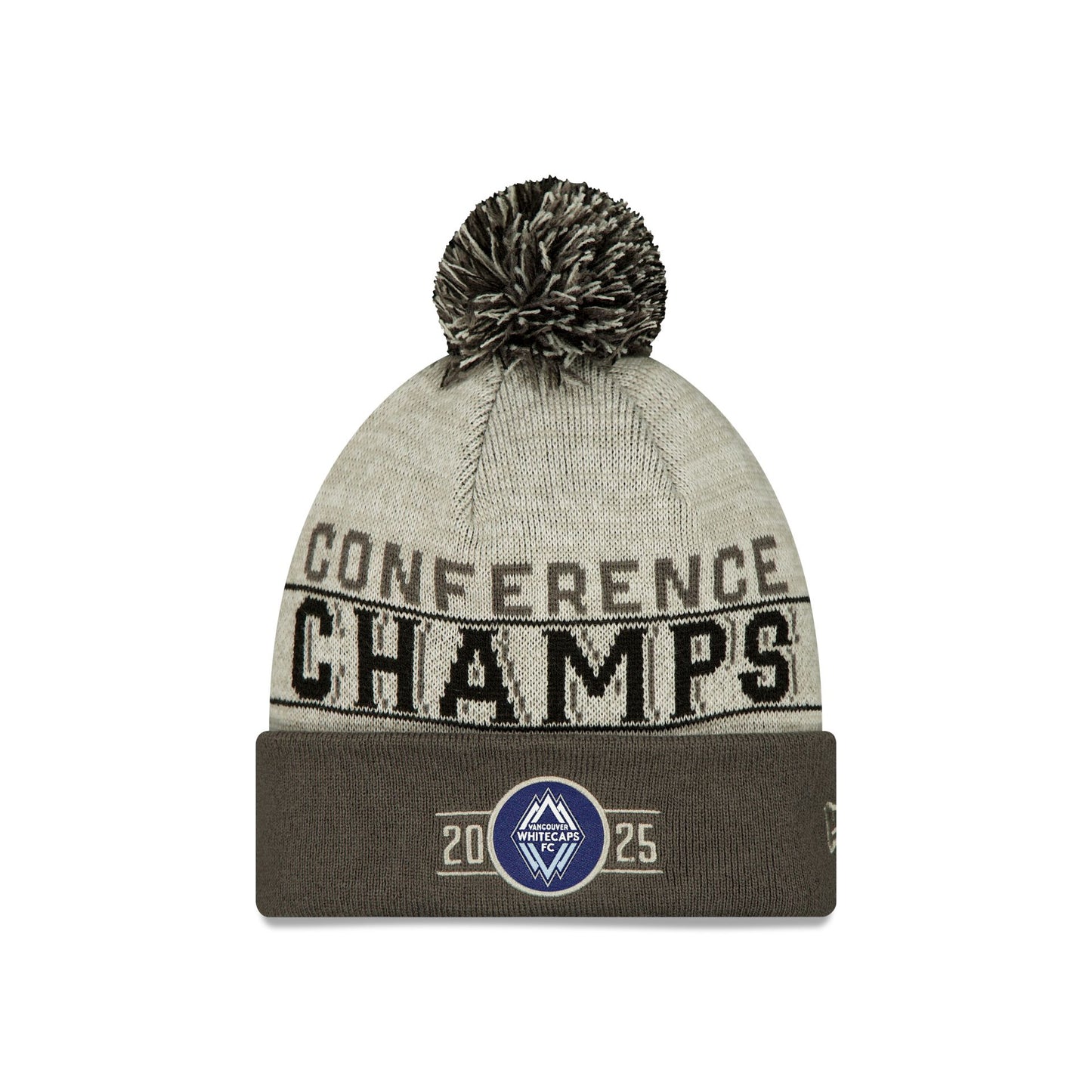 The Vancouver Whitecaps FC 2025 Conference Champions Pom Knit features an embroidered Whitecaps 2025 Conference Champions graphic at the front cuff and wordmark at the crown. Additional details include the MLS Shield at the rear and a one-time removable pom.