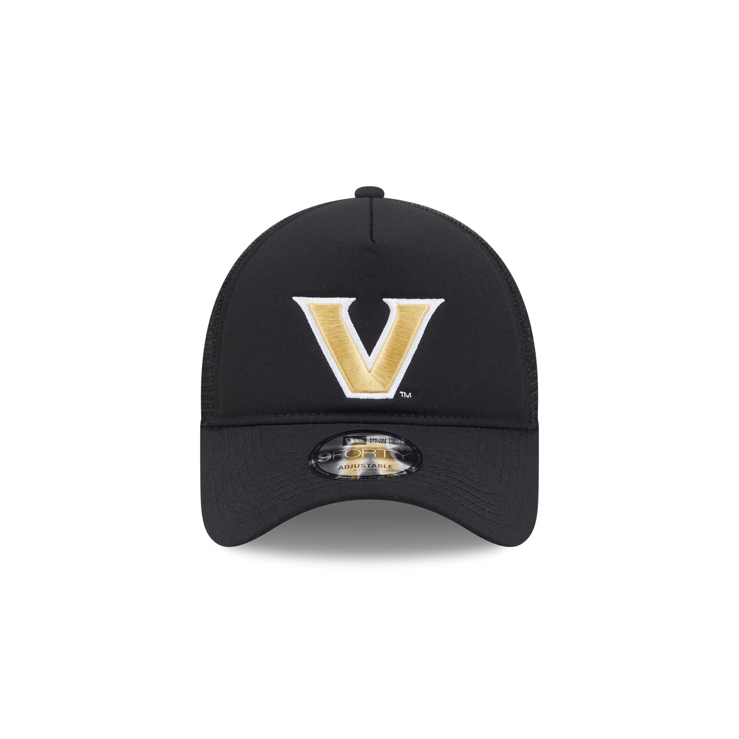The Vanderbilt Commodores Go-To 9FORTY A-Frame Trucker features an embroidered Commodores logo at the front panels with a snapback closure at a mesh rear.