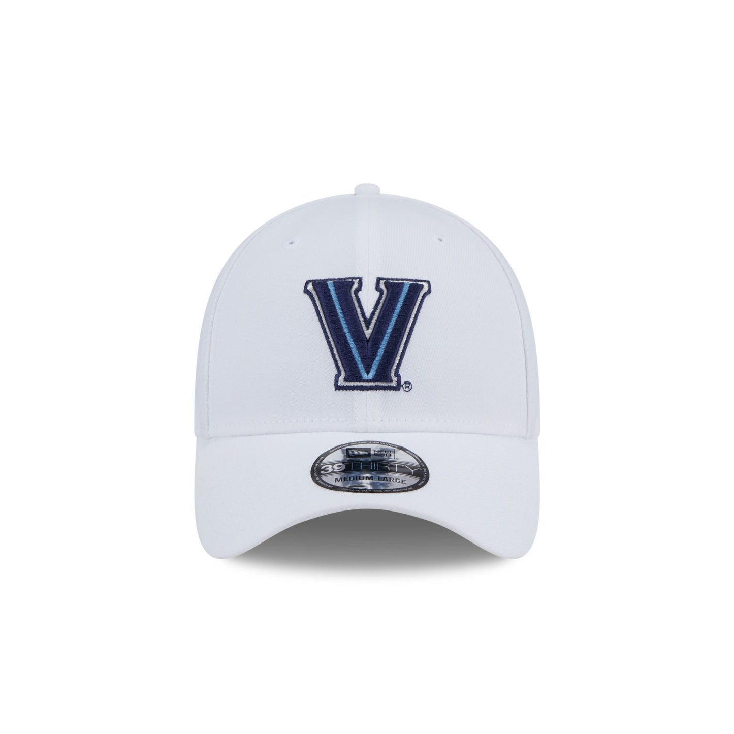 The Villanova Wildcats Chrome 39THIRTY Stretch Fit Cap features an embroidered Wildcats logo at the front panels with a matching team wordmark at the rear and a white undervisor.