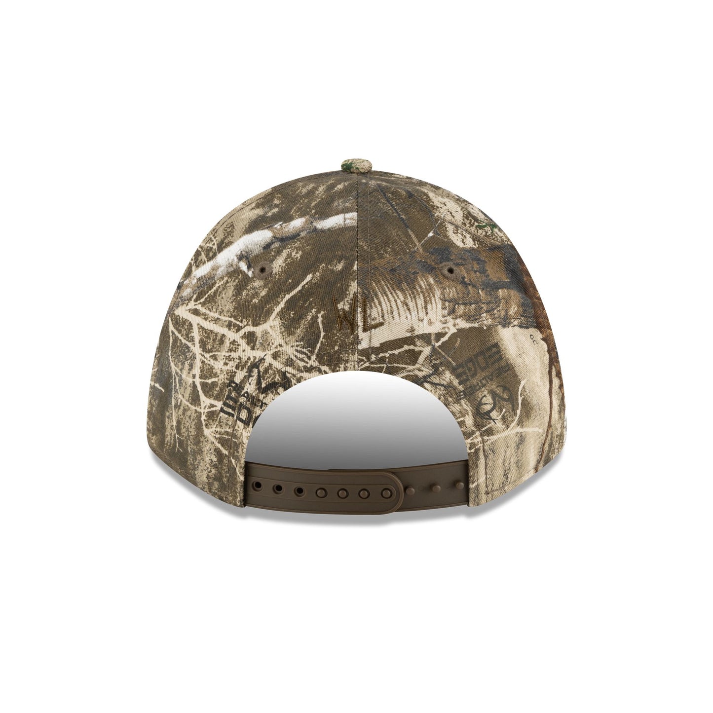 The Warren Lotas x Philadelphia Phillies Realtree 9FORTY M-Crown A-Frame Snapback features an embroidered Phillies logo at the front panels with graphics at each side. Additional details include a Warren Lotas patch at the right-wear side, an adjustable snapback closure at the rear, and a gray undervisor.