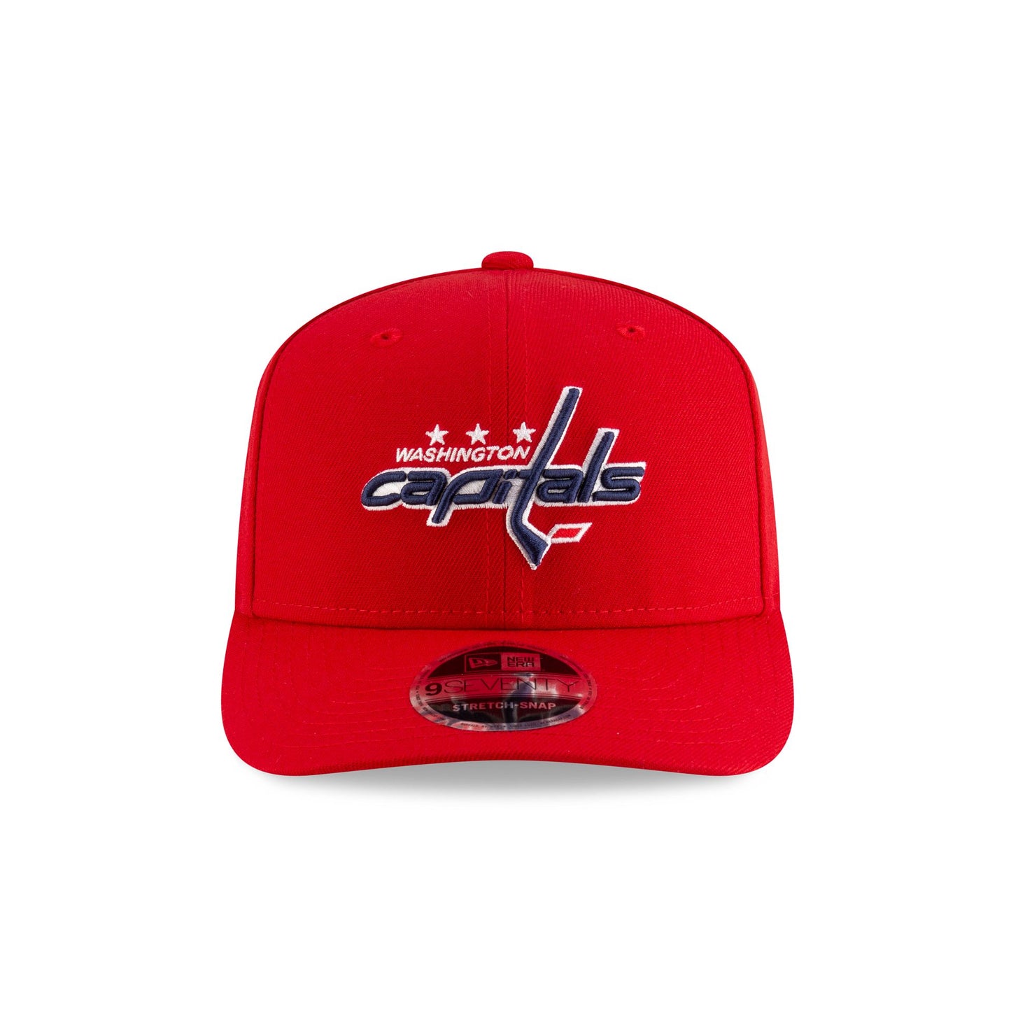 The Washington Capitals Team 9SEVENTY Stretch-Snap Cap features an embroidered Capitals logo at the front panels with the NHL Shield logo above an adjustable stretch-snap closure at the rear and a gray undervisor.
