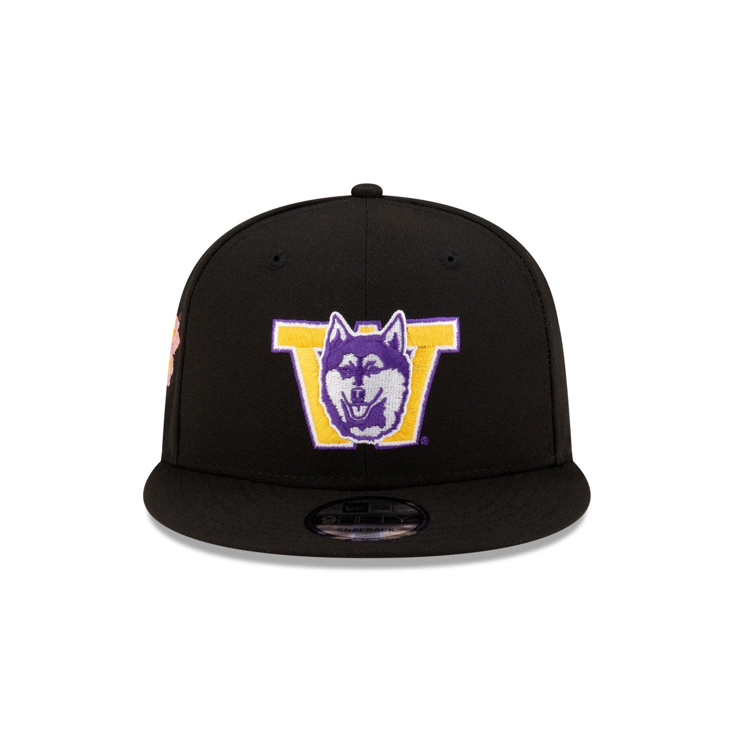 The Washington Huskies Blossom 9FIFTY Snapback features an embroidered Huskies logo at the front panels with a blossom patch at the right-wear side. Additional details include a snapback closure at the rear and a gray undervisor.