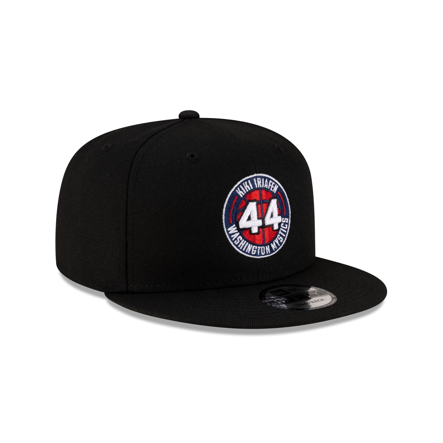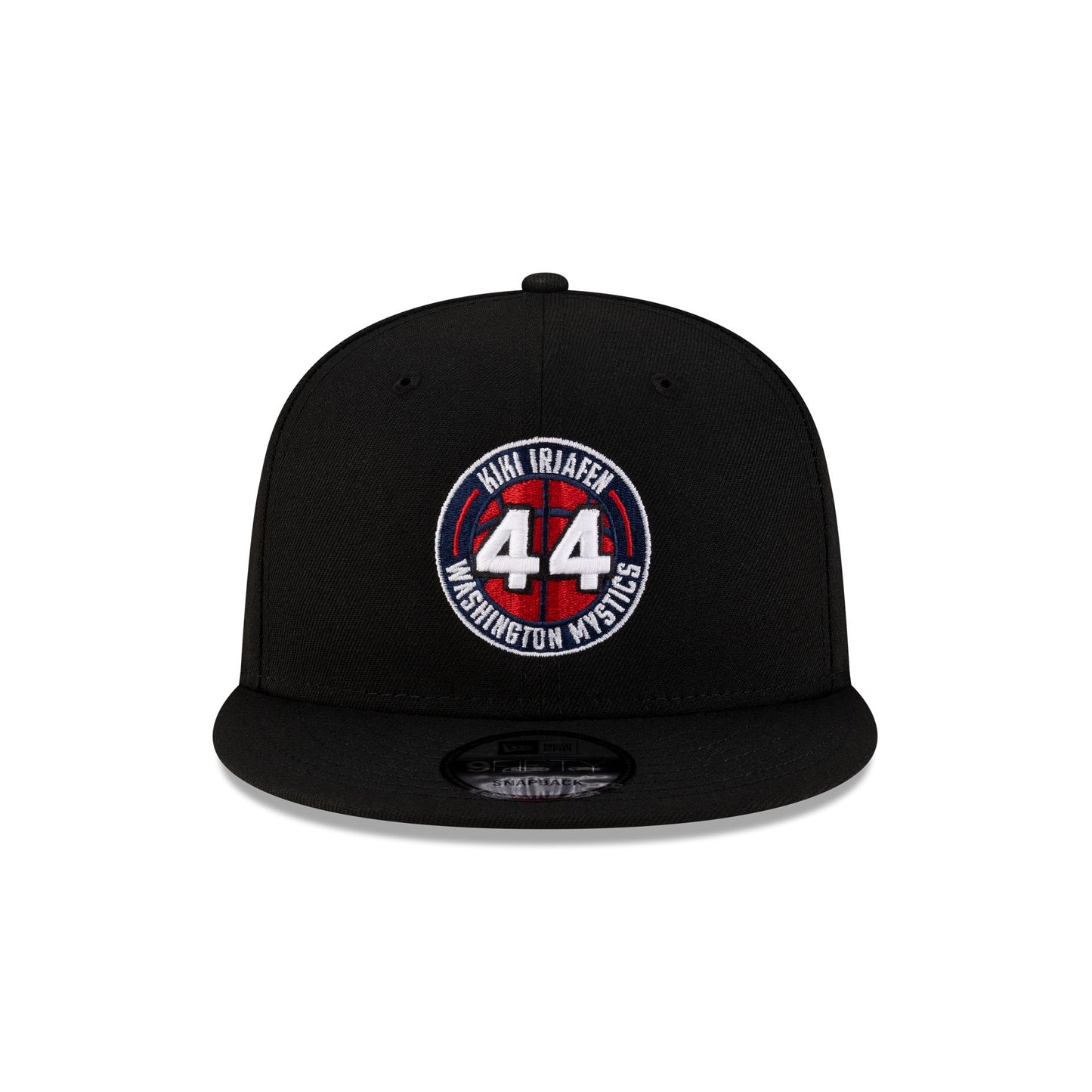 The Washington Mystics Kiki Iriafen 9FIFTY Snapback features the player's name and number at the front panels with an adjustable snapback closure at the rear.